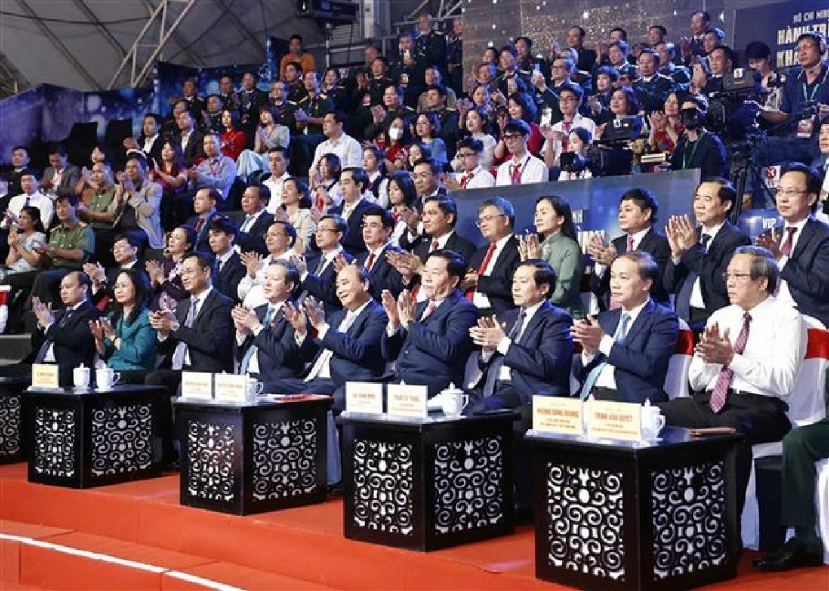 Kơdră teh đak Nguyễn Xuân Phúc păng rim bơngai tang măt năm akŏm Tơdrong “Hô Chĭ Minh – Hơyak kiơ̆ hơpơi 2022”. Um: Thống Nhất/TTXVN