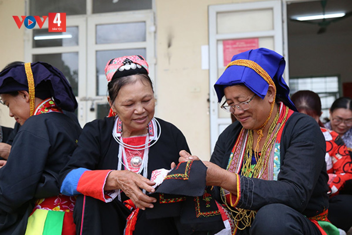 "Tôi học lớp cô Đông dạy từ tháng 10. Mới đầu học thấy hơi khó nhưng 1,2 tuần đã biết thêu. Tôi học lý thuyết song song với thực hành. Mới đầu học thêu dấu X, sau thêu hình con chim, lá cây… Mình cảm thấy rất vui khi được học lớp thêu này và mong muốn thêu được 1 chiếc áo dân tộc Dao Thanh Phán dành tặng cho mẹ hoặc người thân. Việc này vừa giữ được bản sắc dân tộc vừa truyền lại cho con cháu, anh chị em sau này". - Chị Triệu Thị Thùy cho biết.