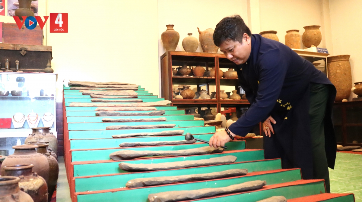 “Đây là một bộ đàn đá đẹp nhất Việt Nam và trên thế giới. Chúng tôi đã đón tiếp được nhiều giáo sư, tiến sỹ trong và ngoài nước đã đến đây và nghiên cứu các hiện vật thuộc văn hoá Chăm và các dân tộc anh em. Tôi xin đánh vài tiếng đàn đá cho các anh chị biết được là cách đây khoảng 3.000 năm về trước vọng về. Xin thưa với các anh chị bộ này sưu tập ở Di Linh của tỉnh Lâm Đồng chúng ta”.