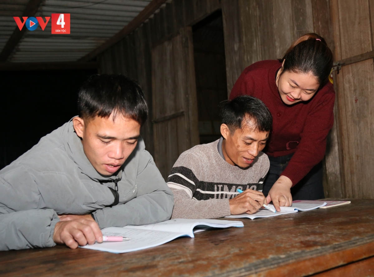 Khi nắng chiều mùa đông tắt dần sau dãy núi, chị Cao Thị Nga ở bản Ón, xã Kim Phú vội thu xếp nông cụ, lội suối về nhà. Vừa kịp lúc con đi học về, hai mẹ con nhóm lửa nấu cơm. Ăn uống, thu dọn thật nhanh để tối nay chị kịp đến lớp xóa mù chữ. Chị bảo, sợ để cô giáo và bà con phải chờ.