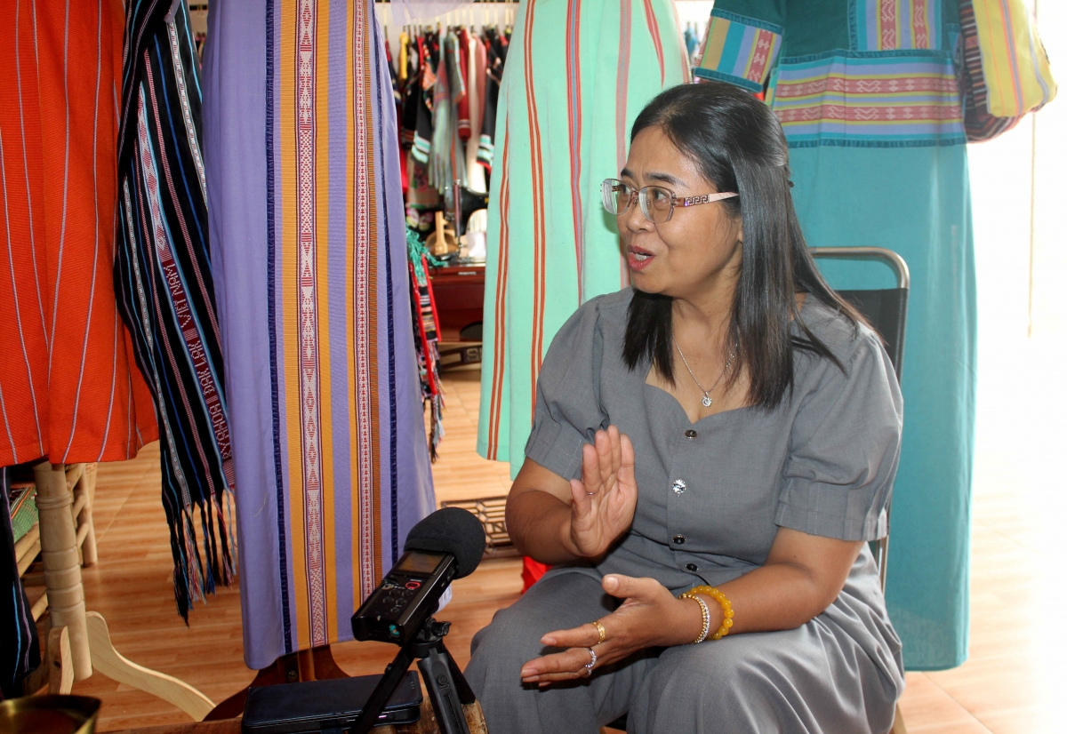 Những tâm huyết ấy đã được sự đồng hành, hỗ trợ của chính quyền địa phương. Nhà cộng đồng buôn Lê được tu sửa lại làm nơi dệt, sản phẩm thổ cẩm được định hướng trở thành sản phẩm OCOP, tạo sinh kế bền vững và mở ra hướng đi trong phát triển du lịch gắn với trải nghiệm văn hóa. Ông Nguyễn Anh Tú, Chủ tịch UBND xã Liên Sơn Lắk, tỉnh Đắk Lắk đánh giá: “Qua kiểm tra, tổ chức dệt của người Mnông này càng ngày càng được phát triển, du khách đến mua các sản phẩm dệt thổ cẩm rất đông. Các khách nước ngoài cũng đặt hàng, đã mang lại hiệu quả phát triển kinh tế rất lớn đối với bà con ở đây. Đối với xã Liên Sơn Lắk thì cũng mới thành lập đây, để ổn định chúng tôi cũng sẽ xây dựng kế hoạch tiếp tục phát triển trong thời gian tới, kể cả nguồn lực cũng như cơ sở hạ tầng và con người trên địa bàn, để từng bước đáp ứng văn hóa thổ cẩm phát triển ngày càng nhiều hơn trên địa phương".