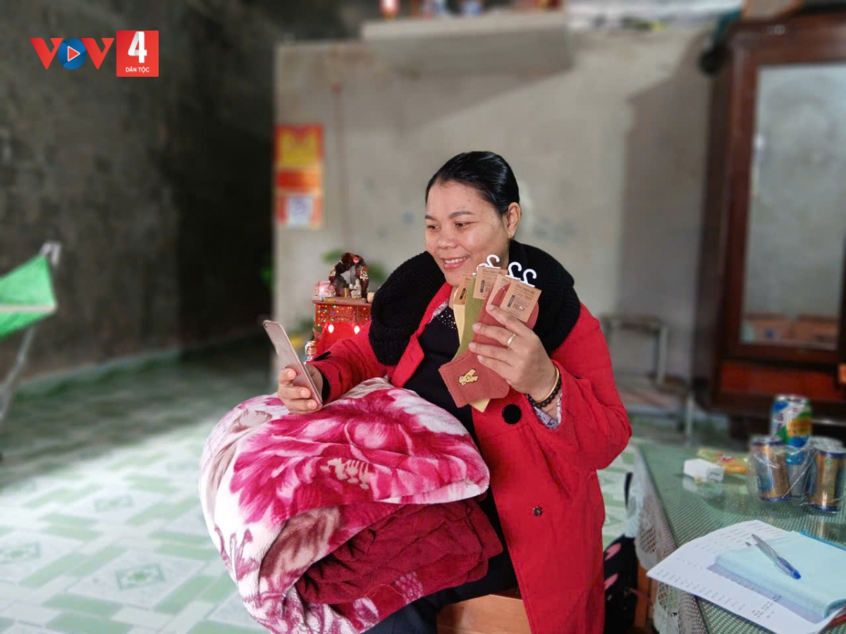 Ở thôn Tống Coói, xã miền núi Sông Vàng, chị Alăng Lanh ngày nào cũng tất bật với việc bán hàng ngay tại nhà. Chỉ cần chiếc điện thoại thông minh, chị nhận đơn, trả lời tin nhắn và giao đủ loại mặt hàng từ bát, thau, chăn đến thảm. Trước đây, chị Lanh làm cán bộ bán chuyên trách xã nhưng thu nhập thấp, không đủ nuôi ba con nhỏ. Chị quyết định nghỉ việc, đầu tư nuôi heo, trồng rừng và bán hàng online để tăng thu nhập.