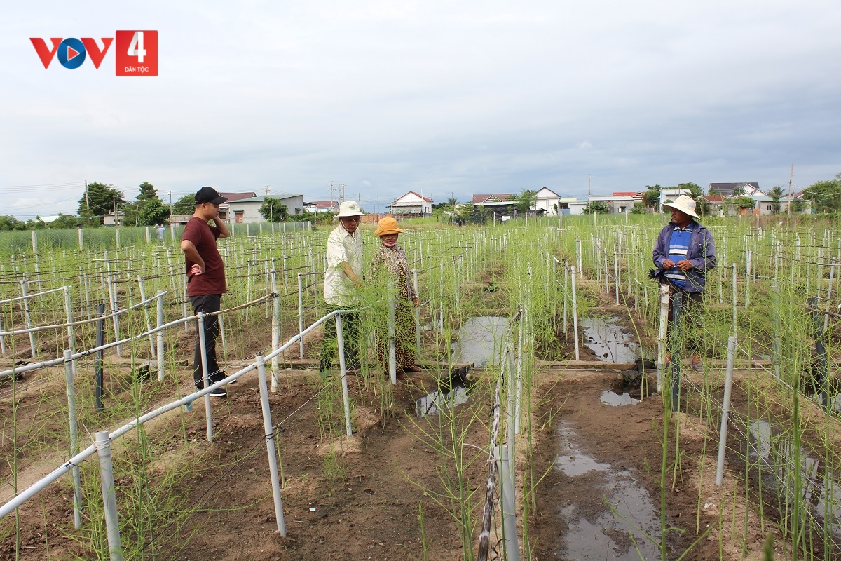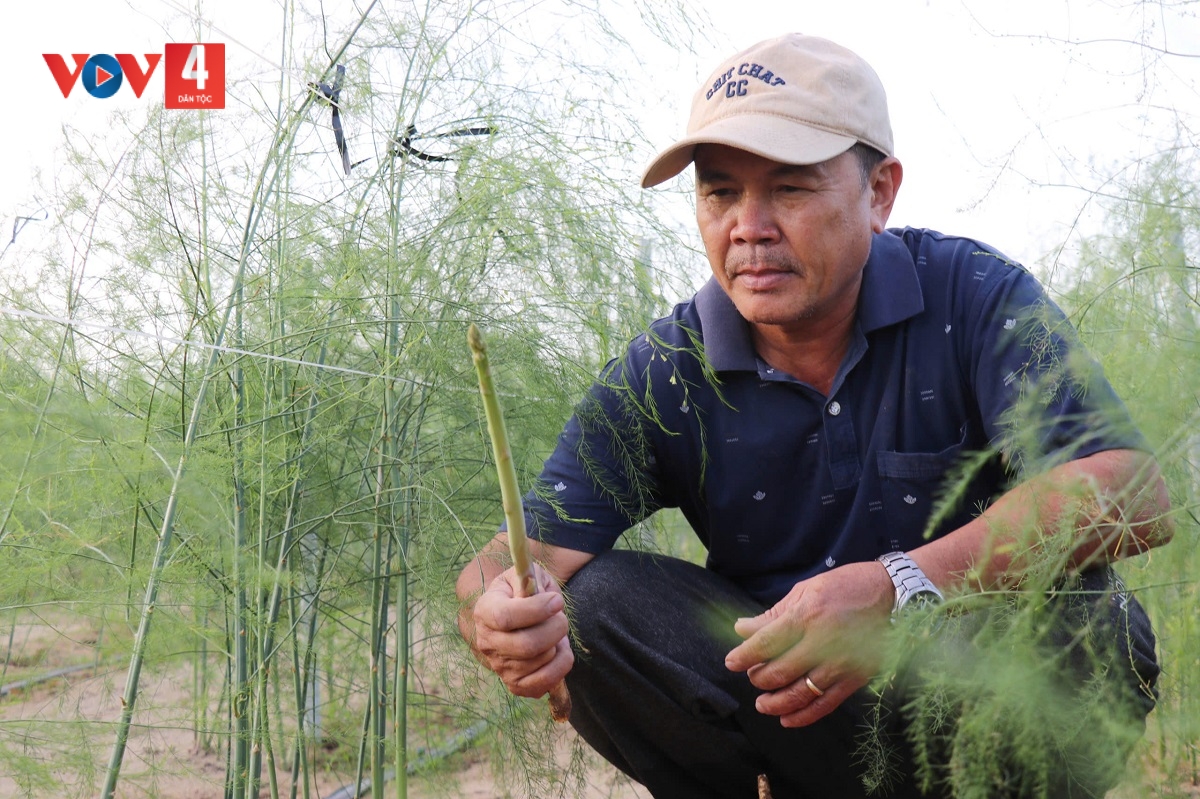 “Vốn đầu tư cây măng tây là rất cao, từ 45 đến 50 triệu đồng trên một sào (1.000 m2). Do ban đầu chi phí cao, nên gập rất nhiều khó khăn. Cây măng tây vườn của tôi làm mấy chục năm rồi, tôi không trồng gì ngoài cây măng tây. Tại vì cây măng tây cho nông dân thu nhập hàng ngày, ngày nào cũng có tiền. Bởi vậy, cây này không phải là cây xóa đói giảm nghèo mà là cây làm giàu cho nông dân người Chăm trên vùng đất cát này”