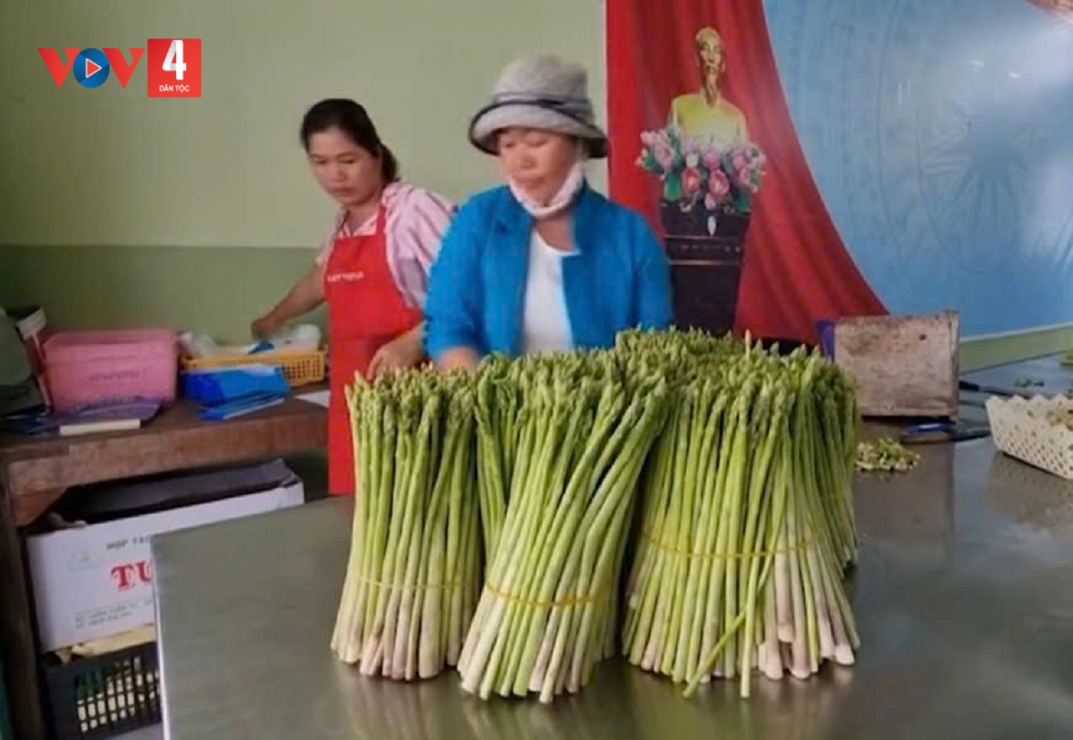“Năc ma nưih ting pâh HTX tơợ c’moo 2016, vêy lâh 2 sào măng tây, zập t’ngay pa chô tơợ 20 – 25kg măng, thu nhập tệêm ngăn, zập c’xêê bơơn lâh 20 ức đồng”.