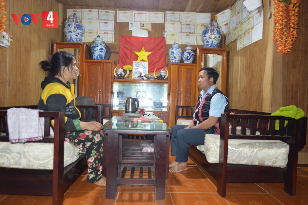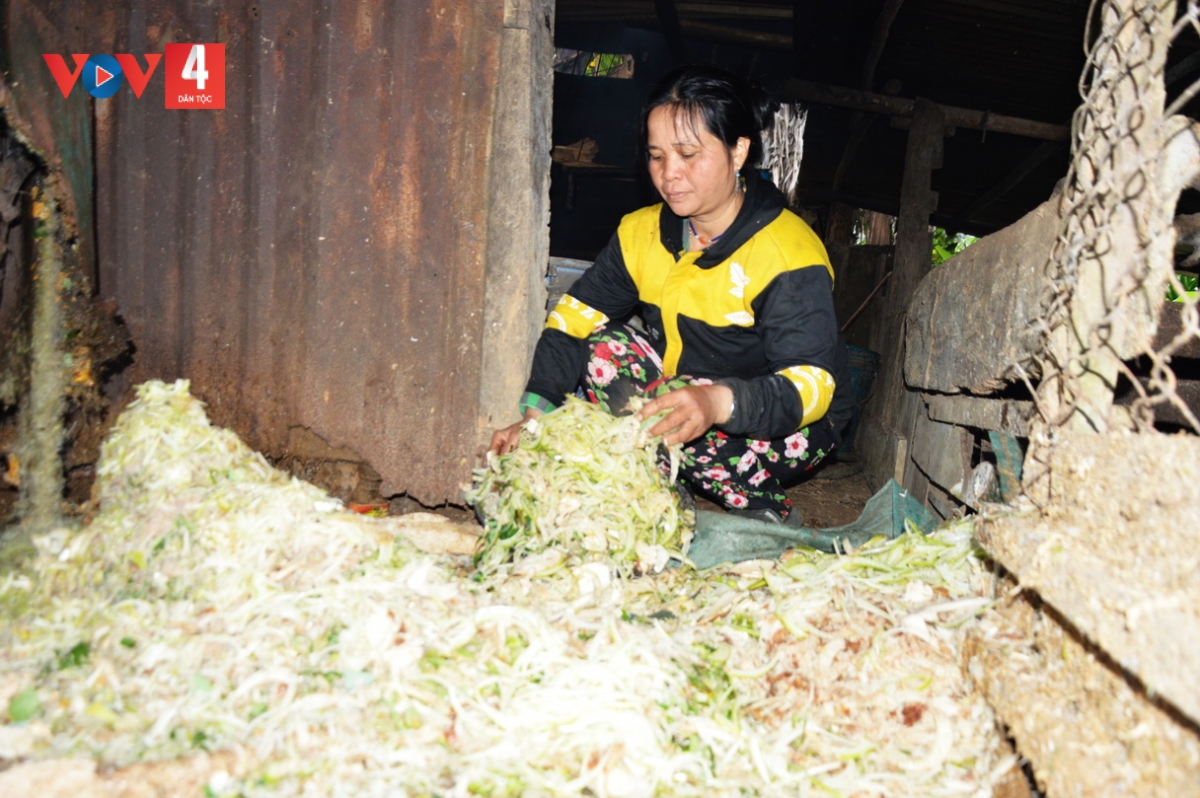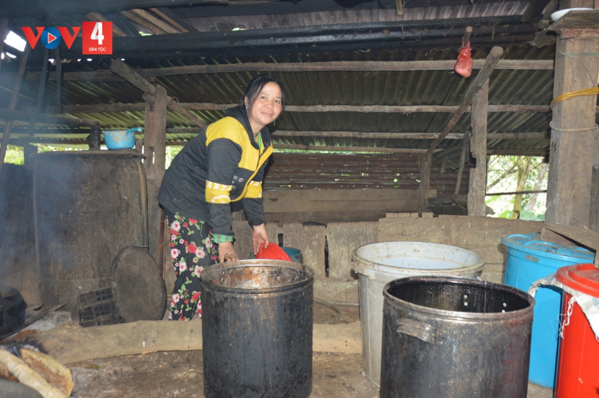 Chị Pơloong Chiếu cho biết, gia đình chị đã đăng ký thoát nghèo bền vững từ 10 năm nay. “Tôi nuôi 2 đứa con ăn học nên bản thân mình phải cố gắng gấp nhiều lần so với người khác. 3 giờ sáng dậy nấu 1 nồi rượu 7, 8 giờ mới xong. Ăn sáng xong lại tranh thủ lên nương làm rẫy, cày ruộng hoặc đi làm công cho họ. Không có thời gian nghỉ ngơi, làm quần quật ngày đêm. Nay các con lớn rồi, bản thân cũng đỡ vất vả, kinh tế gia đình cũng khá ổn định. Nay tôi tập trung chăn nuôi và trồng trọt để phát triển kinh tế gia đình ổn định hơn”.