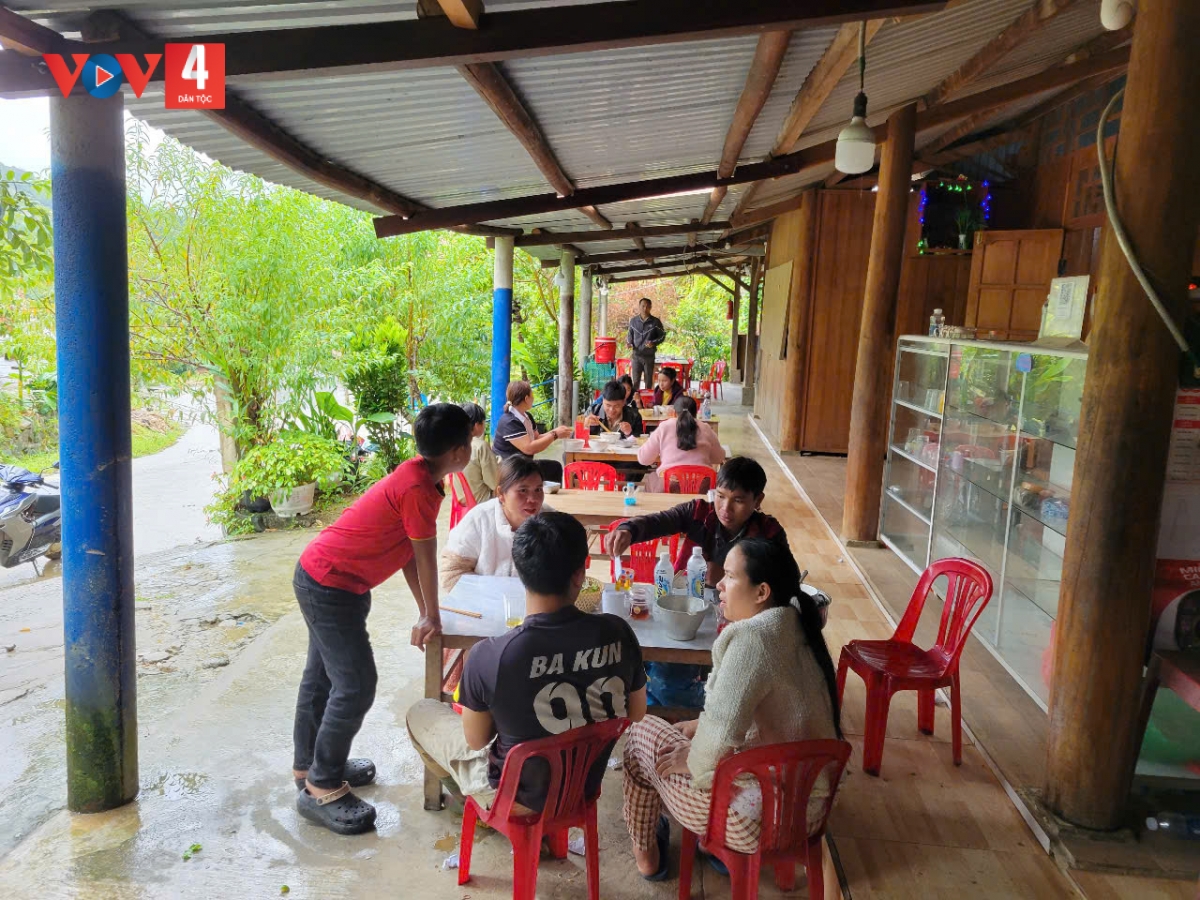 Cũng như chị Alăng Thị Mí, gia đình chị Lê Thị Bông ở thôn Ariing, xã Hùng Sơn trước đây thuộc diện hộ nghèo. Sau khi kết hôn, vợ chồng chị vay người thân 20 triệu đồng đầu tư mở quán bán bán tạp hóa và cà phê, nước giải khát. Nhận thấy nhu cầu ăn uống của người dân tăng cao, chị mở quán ăn, sử dụng nguồn thực phẩm, rau củ sạch tại địa phương để phục vụ bà con. Chị còn đầu tư sắm bàn ghế cho thuê, nhận nấu các đám tiệc tại địa phương.