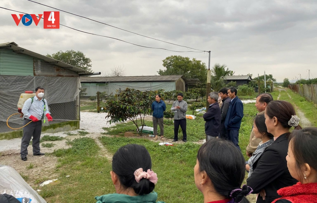 T’cooh Trần Văn Tựu, Tổ trưởng Ban Băn rơơi lâng pa dưah đh’reh bh’năn chr’val Đan Điền, thành phố Huế muy coh apêê pr’loọng ăt zâng ngân âng boo tuh. T’cooh Tựu đoọng năl, g’luh tuh ha nua âi bhrợ bil bal ngân ha đha nuôr vêêl đong, bâc cr’năn a tưch a đha, t’rí k’rooc crêê loong c’măp. Cơnh xang tuh, đha nuôr năc âi tơơp prih dooh, khử trùng đong c’roọl đoọng đơơh yêm têêm bh’rợ tr’nêng pr’ăt tr’mông.“C’la đong cu công crêê bil 128 p’nong a tưch, prang chr’val công bil bal a tưch, a đha năc 7.216 p’nong, bil bal bâc bhlâng. Rơơm kiêng bơơn zooi đoọng ch’na bh’năn, m’ma acoon bh’năn xang năc muy bơr hóa chất tiêu độc khử trùng”.