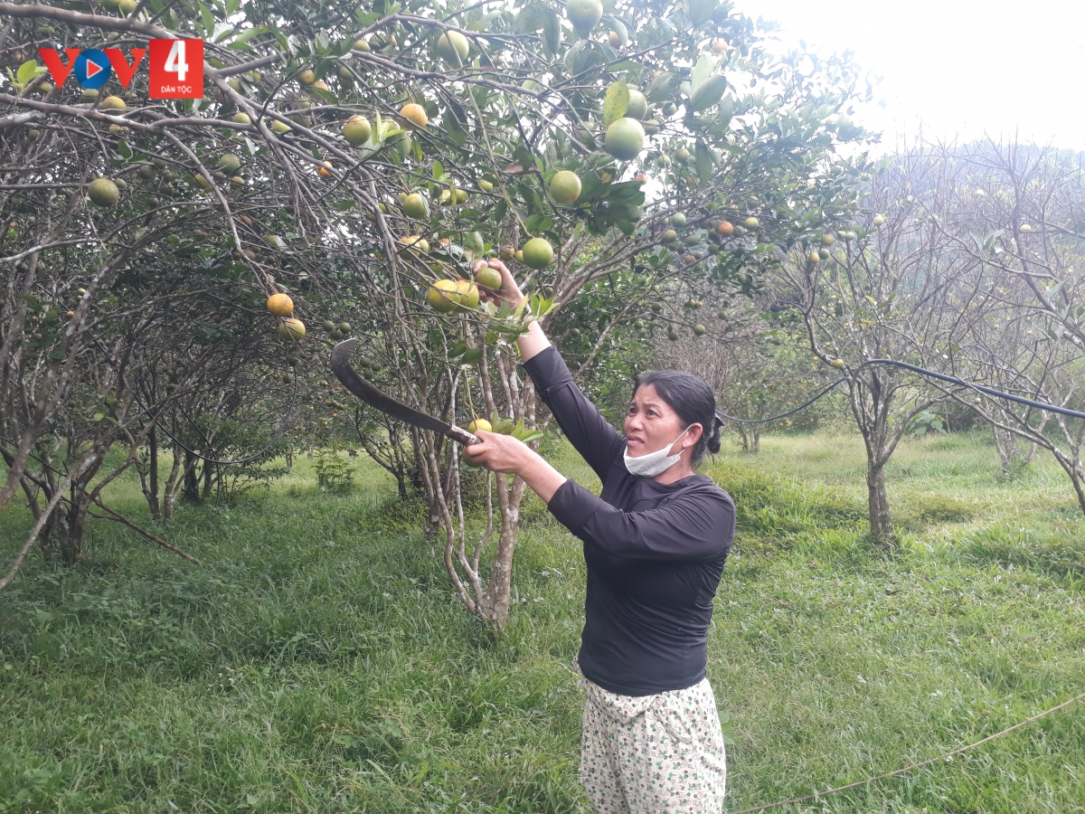 “Mỗi vụ thu được hơn 3 tấn. Bán sỉ thì khoảng 20 nghìn đồng một ký, còn bán lẻ thì được 25 nghìn. Nhưng mà khó nhất là đầu ra, nhiều khi cam chín rộ cùng lúc, ra chợ bán nếu dịp rằm và mồng 1 thì cũng chỉ được vài chục ký thôi, còn ngày thường bán được ít lắm”.