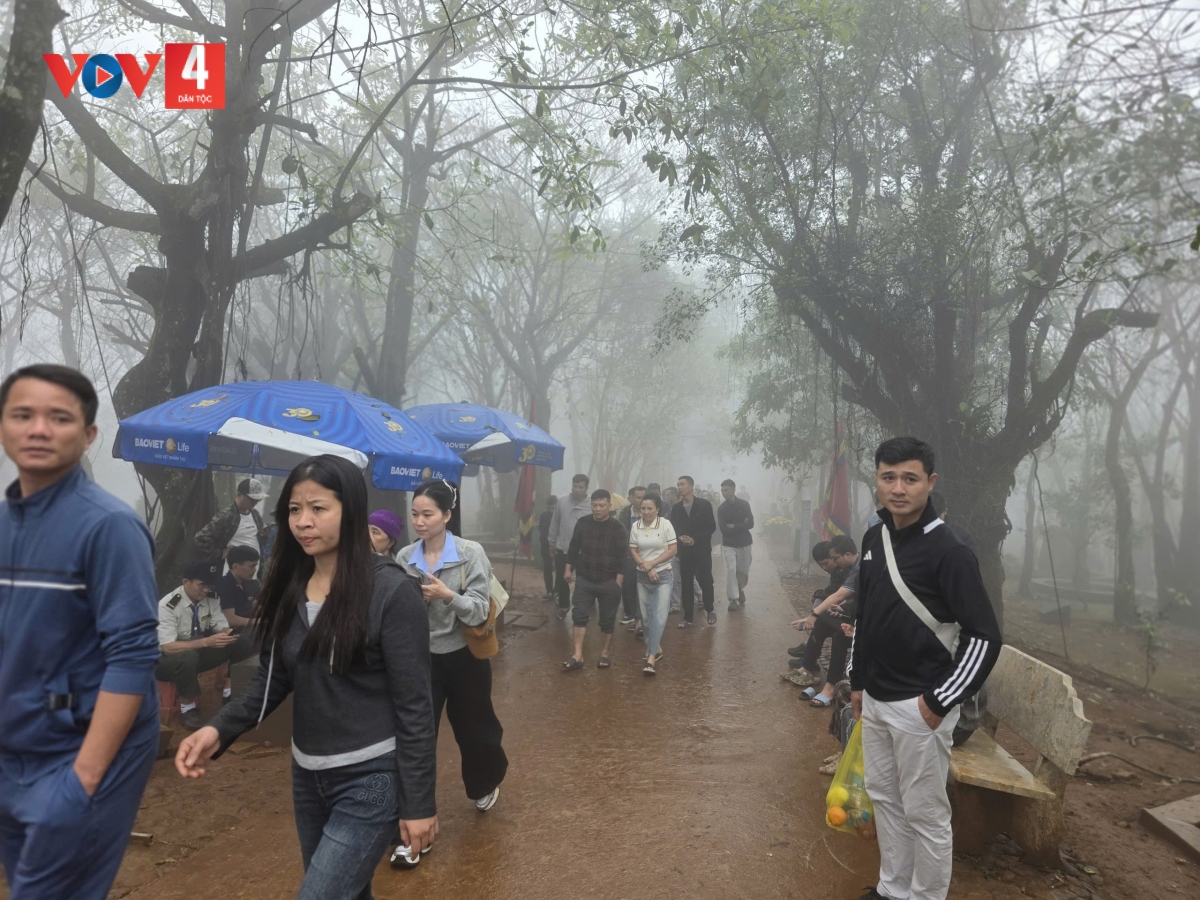 Từ sáng sớm, từng đoàn người đã nối nhau lên núi. Người già, trẻ nhỏ, thanh niên… ai cũng mang theo niềm háo hức của chuyến du xuân. Gió núi mát lành, hương trầm thoảng nhẹ, quyện trong không khí tạo nên một không gian vừa thanh tịnh, vừa ấm áp. Dừng chân trước “Cổng Trời”, nơi được người dân ví như “huyệt đạo thiêng” của đất trời xứ Thanh, bà Hoàng Thị Dự và bà Lê Thị Niên đến từ xã Hoằng Phụ, tỉnh Thanh Hóa cho biết: