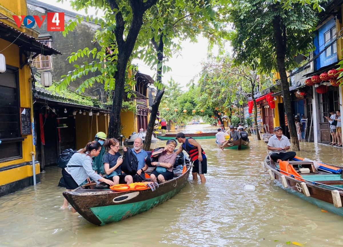Các đợt mưa lũ kéo dài trong những ngày cuối tháng 10 đầu tháng 11, phố cổ Hội An, thành phố Đà Nẵng ngập lụt nặng. Thế nhưng, khách du lịch vẫn tìm đến Hội An dịp này. Khách du lịch nước ngoài có dịp trải nghiệm lội bộ phố cổ trong nước lũ.