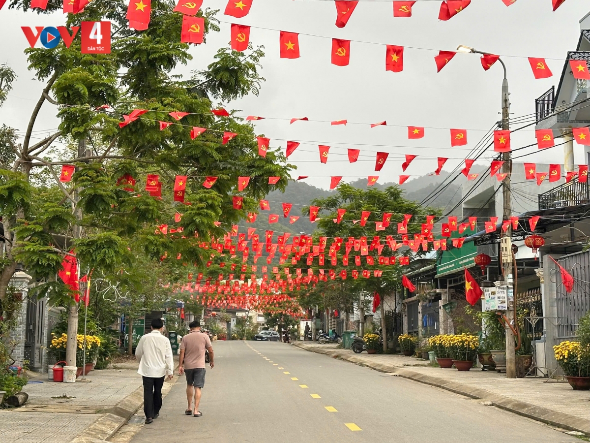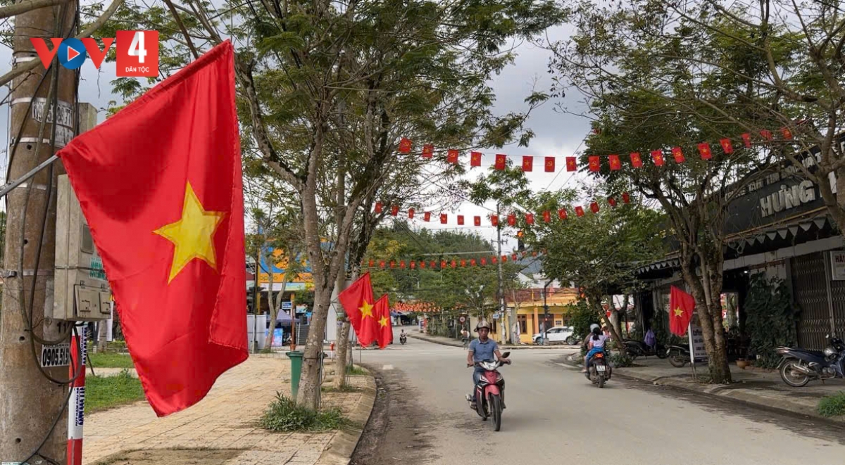 Tại xã Đông Giang, nhiều tuyến đường dẫn vào khu dân cư đã khoác lên mình diện mạo mới. Cờ Tổ quốc, băng rôn, khẩu hiệu tuyên truyền về ngày bầu cử được treo trang trọng dọc các trục đường chính. Những con đường làng quen thuộc được bà con cùng nhau quét dọn sạch sẽ, hai bên đường được cắt tỉa cây xanh, chỉnh trang bồn hoa, tiểu cảnh. Không khí lao động rộn ràng như một ngày hội nhỏ trong từng thôn bản, thể hiện sự háo hức của người dân trước sự kiện chính trị quan trọng của đất nước.