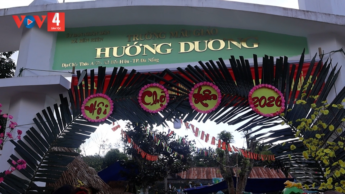 Cơ Tu VOV: T’Ngay 28/1, Trường Mẫu giáo Hướng Dương chr’val Bến Hiên bhrợ “Hội chợ ha pruốt vel ađhi” đoọng t’vaih pr’ặt bui har cơnh lâng p’niên mẫu giáo bêl Tết Nguyên Đán Bính Ngọ c’moo 2026