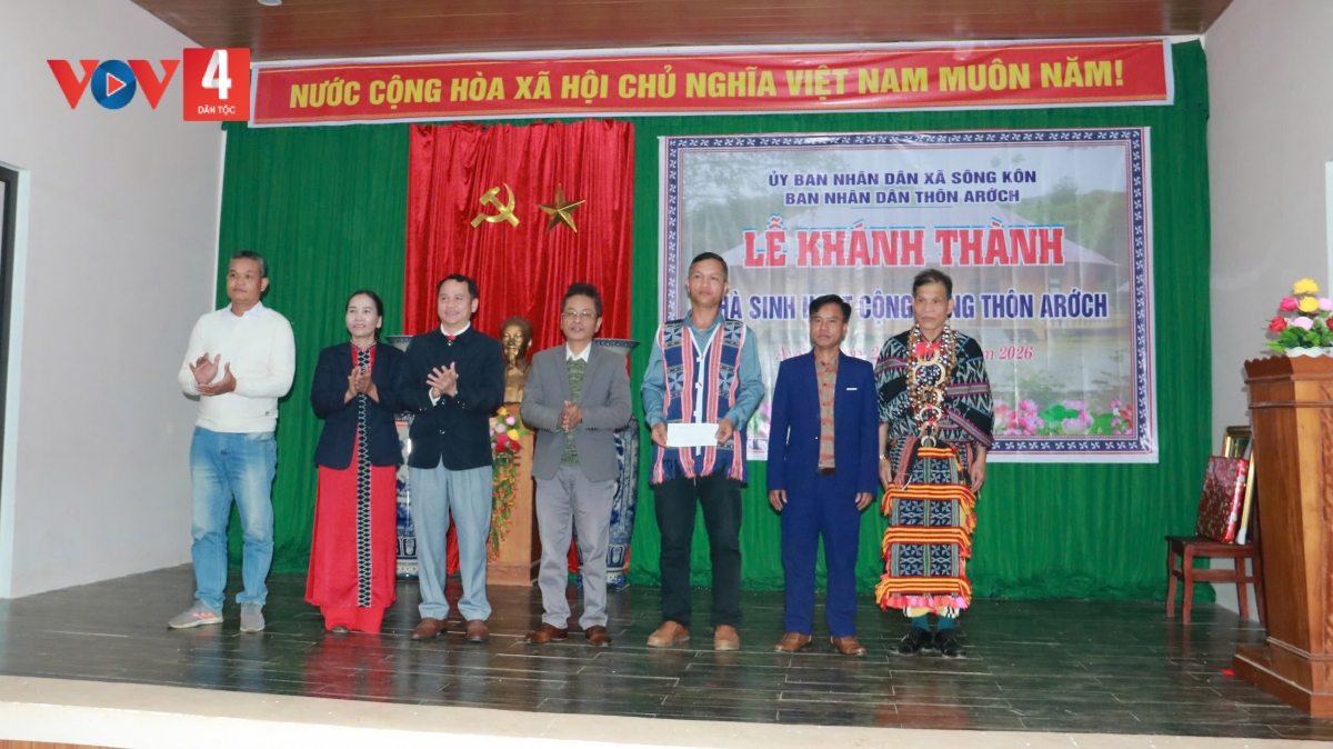 Ngày 27/01, trong không khí phấn khởi chào mừng Đại hội Đảng toàn quốc thành công, kỷ niệm 96 năm Ngày thành lập Đảng Cộng sản Việt Nam (03/02/1930 – 03/02/2026) và mừng Xuân Bính Ngọ 2026, cán bộ và Nhân dân thôn A Rớch, xã Sông Kôn đã long trọng tổ chức Lễ khánh thành Nhà sinh hoạt cộng đồng thôn.