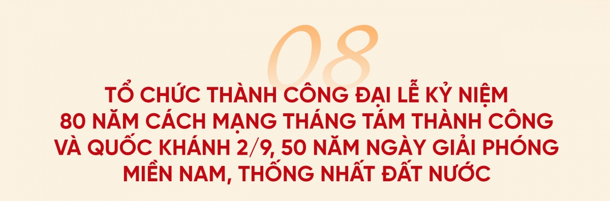 Hàng loạt sự kiện kỷ niệm trong năm 2025 đã được tổ chức thành công, trang trọng, đúng tầm vóc sự kiện và tuyệt đối an toàn. Trong đó, các hoạt động của 2 đại lễ kỷ niệm 80 năm Cách mạng Tháng Tám thành công và Quốc khánh 2/9; 50 năm Ngày Giải phóng miền Nam, thống nhất đất nước đã để lại dấu ấn chưa từng có. Lễ diễu binh, diễu hành trên Quảng trường Ba Đình sáng 2/9 ở Thủ đô Hà Nội và trên đường Lê Duẩn sáng 30/4 ở TP Hồ Chí Minh với hàng triệu người dân và các lực lượng vũ trang tham gia. Hình ảnh những đoàn diễu binh, diễu hành “đi giữa lòng nhân dân” không chỉ lan toả thông điệp sâu sắc về khát vọng độc lập, tự do, hoà bình, hữu nghị đến bạn bè quốc tế mà còn để lại niềm xúc động lớn lao về tinh thần tự tôn, tự hào dân tộc.