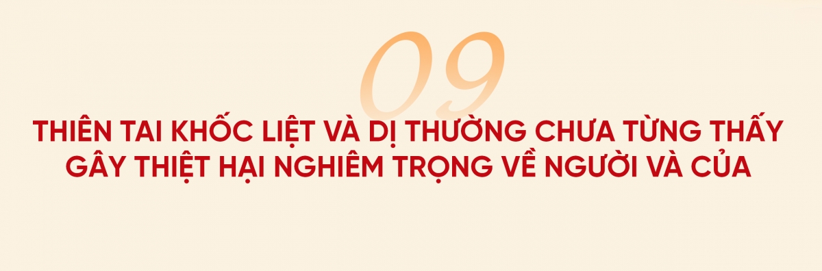Năm 2025 được đánh giá là một trong những năm thiên tai xảy ra dồn dập, khốc liệt và dị thường nhất trong lịch sử khí tượng thủy văn Việt Nam với nhiều hình thái nguy hiểm xuất hiện trên phạm vi rộng, nối tiếp và chồng lấn như bão, mưa lớn diện rộng, lũ lụt, lũ quét và sạt lở đất. Đã có 15 cơn bão và 6 áp thấp nhiệt đới trên Biển Đông; mưa lớn cực đoan xảy ra gây lũ vượt lịch sử trên 18 tuyến sông khu vực Bắc Bộ và Trung Bộ; triều cường vượt lịch sử tại hạ lưu sông Tiền, sông Hậu; ngập lụt rất nghiêm trọng tại các đô thị, vùng trũng thấp…Tính đến ngày 20/12, thiên tai trên cả nước đã làm 468 người chết, mất tích, 741 người bị thương; gần 4.200 nhà bị sập, đổ, trôi, 348.834 nhà bị hư hỏng, tốc mái; 545.395ha lúa, hoa màu bị ngập úng, thiệt hại; 71.687 con gia súc, 5,16 triệu con gia cầm bị chết, cuốn trôi; 171.763 lồng bè thủy sản bị thiệt hại; 1.070km đê, kè, kênh mương bị thiệt hại; 140km bờ sông, bờ biển bị sạt lở; 1.259km đường giao thông bị thiệt hại...Tổng thiệt hại ước tính hơn 98.677 tỷ đồng, bằng 0,7-0,8% GDP năm 2025.