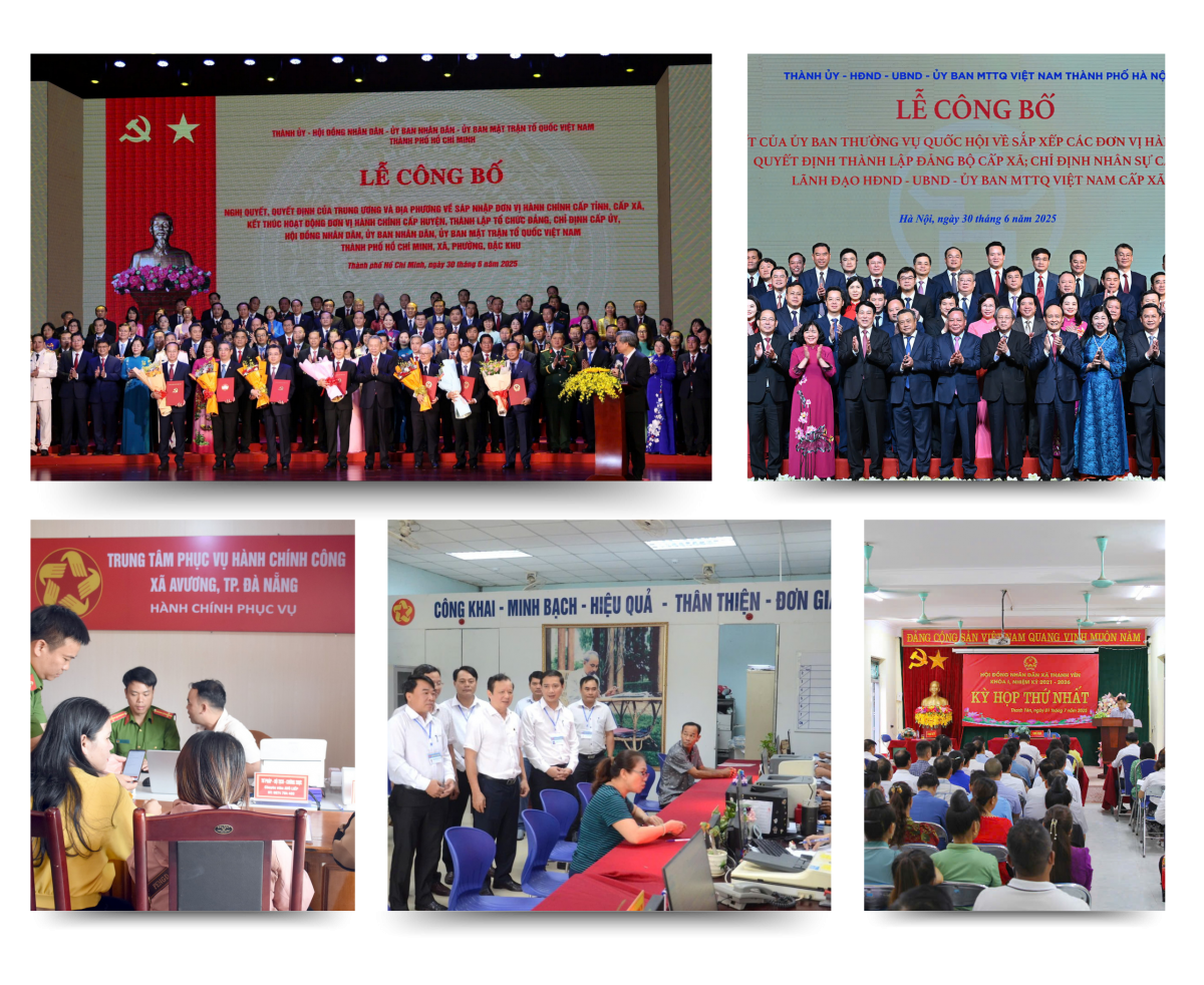 Ngày 1/7/2025, cả nước chính thức vận hành bộ máy chính quyền địa phương hai cấp. 63 tỉnh, thành sau khi hợp nhất, sáp nhập còn 34 tỉnh, thành với 3.321 xã, phường, đặc khu. Tổng Bí thư Tô Lâm nhấn mạnh quyết định “sắp xếp lại giang sơn” là bước đi lịch sử có ý nghĩa chiến lược, đánh dấu một giai đoạn phát triển mới trong sự nghiệp hoàn thiện bộ máy hành chính nhà nước, hoàn thiện thể chế và tổ chức của hệ thống chính trị đồng bộ, tinh gọn, hiệu lực, hiệu quả, hướng tới hoàn thiện một nền hành chính quản trị hiện đại, gần dân, sát dân, vì nhân dân phục vụ, để mọi lợi ích thuộc về nhân dân.