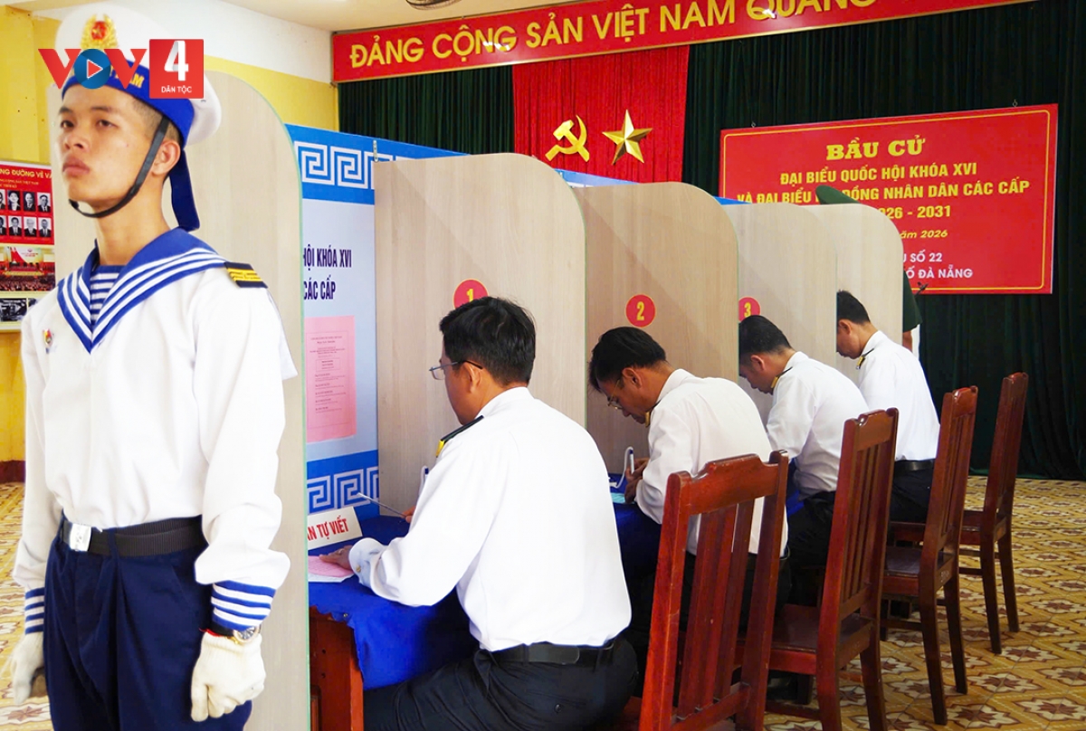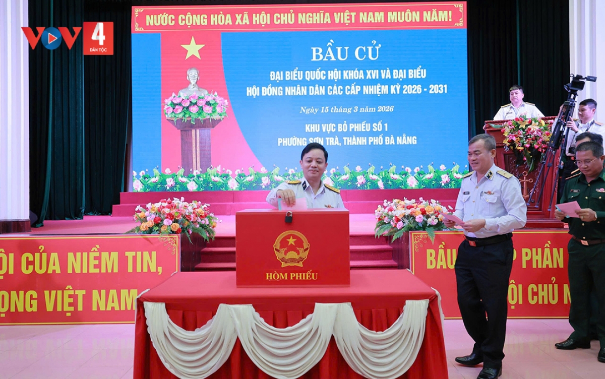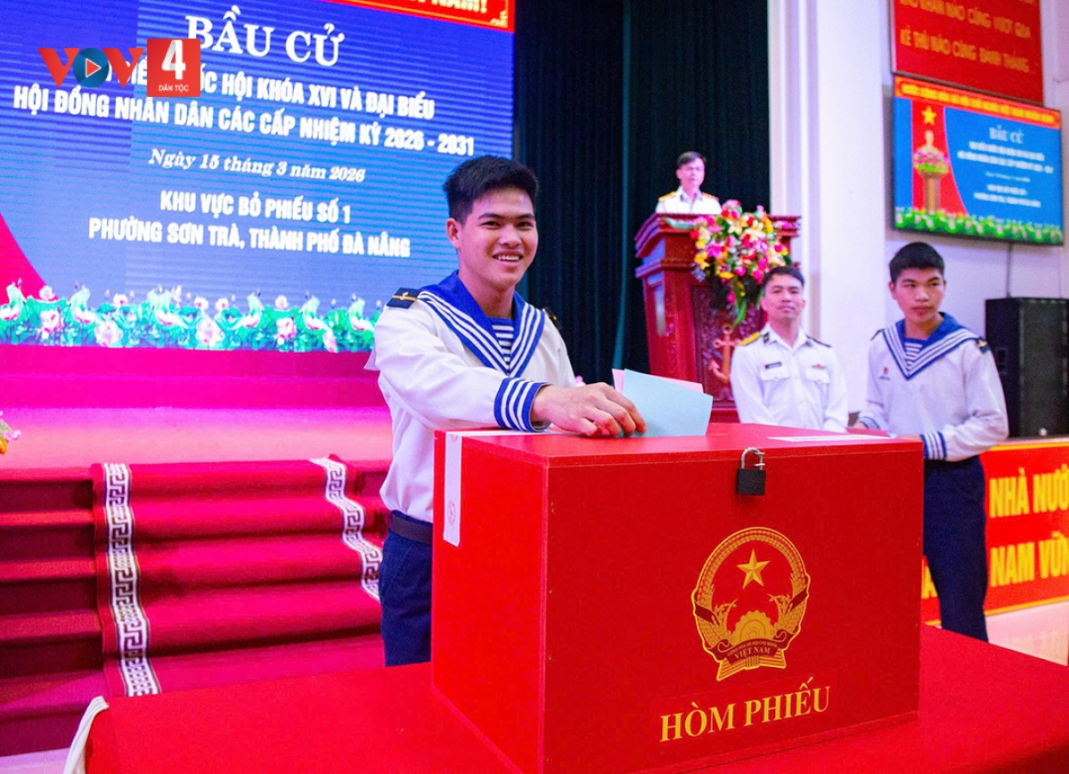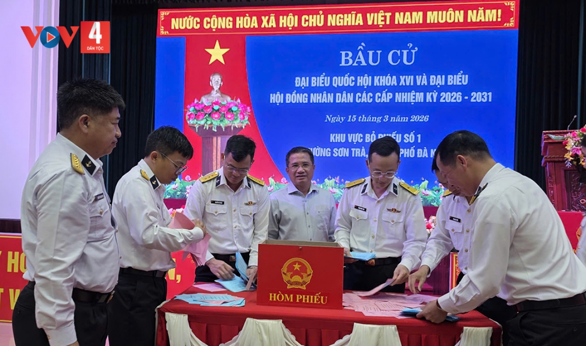 Đến 19 giời tối nay (15/3), 100 % cán bộ chiến sĩ Vùng 3 Hải quân đã tham gia bỏ phiếu bầu cử Đại biểu Quốc hội khóa XVI và đại biểu Hội đồng nhân dân các cấp nhiệm kỳ 2026-2031 tại khu vực bỏ phiếu số 1 phường Sơn Trà, thành phố Đà Nẵng