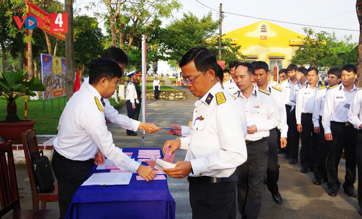 Đại tá Nguyễn Quang Vinh, Phó Chủ nhiệm Chính trị vùng 3 Hải quân cho biết, đến thời điểm này, 100% cán bộ chiến sĩ đã tham gia bỏ phiếu bầu cử: “Tại điểm bỏ phiếu số 1 trong ngày hôm nay, thực hiện kế hoạch và chương trình của trên chúng tôi đã tổ chức bỏ phiếu an toàn, dân chủ và đến thời điểm này, số cử tri bỏ phiếu đạt 100%. Riêng đối với tất cả các đơn vị đi thực hiện nhiệm vụ ở xa và công tác ở các đài, trạm chúng tôi liên hệ với chính quyền địa phương tổ chức cho các bộ, chiến sĩ bỏ phiếu theo đúng quy định”./
