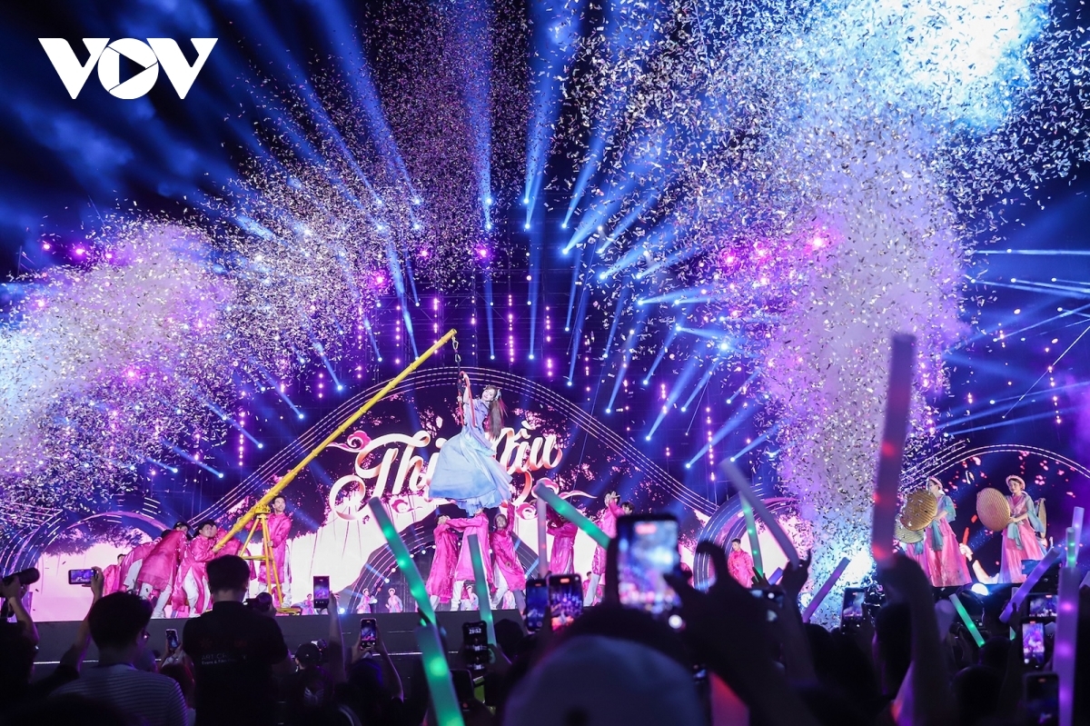 Hàng vạn khán giả bật đèn flash tạo nên một không gian lung linh đêm khai mạc. Phóng viên Hồng Phương, Cơ quan thường trú Đài Tiếng nói Việt Nam khu vực đồng bằng sông Cửu Long bày tỏ ấn tượng: “Từng tham dự nhiều kỳ liên hoan nhưng đây là lần để lại nhiều dấu ấn trong đêm khai mạc cho tôi nhất. Ngoài sự nhiệt tình của nghệ sĩ, tôi đặc biệt ấn tượng với màn hình sân khấu, không gian thêm phần lung linh hơn, khắc họa rõ nét nhịp sống số hòa vào cuộc sống nói chung, văn hoá nghệ thuật nói riêng”.