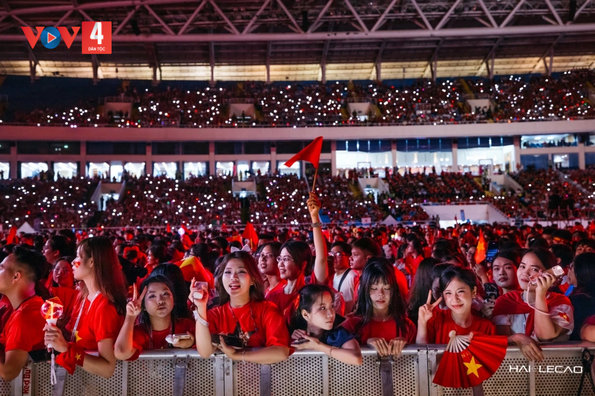Khán giả thích thú check-in sân khấu bằng lightstick có logo của Đài Tiếng nói Việt Nam. Những thanh âm mở đầu chương trình “Đây là Tiếng nói Việt Nam” khiến nhiều người xúc động bởi sự thân thuộc, gần gũi.