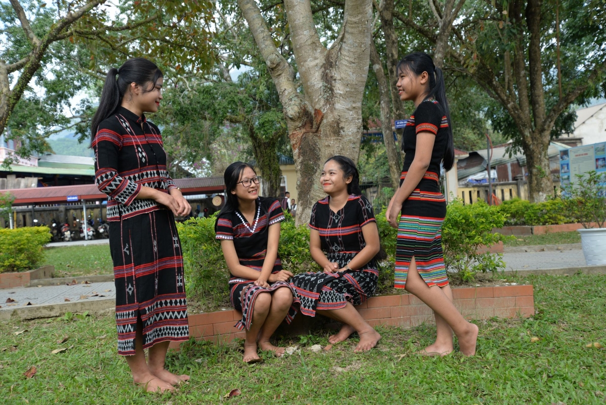 Tại trường THCS Quang Trung, huyện A Lưới, cùng với việc khuyến khích các thầy cô giáo và học sinh mặc trang phục truyền thống từ thổ cẩm Zèng, nhà trường thành lập các câu lạc bộ văn hóa, văn nghệ truyền thống thu hút nhiều giáo viên và học sinh tham gia. Đặc biệt, nhiều năm qua, tiết chào cờ đầu tuần của giáo viên và học sinh nơi đây đã trở nên lôi cuốn khi các em được biểu diễn những tiết mục hát múa truyền thống, kể những câu chuyện cổ tích Tà Ôi, Pa Cô, Cơ Tu hay đọc những bài thơ mà các em yêu thích. Theo cô Trần Thị Tỷ Muội, Hiệu trưởng trường THCS Quang Trung, tất cả những hoạt động này đã góp phần giúp học sinh hiểu hơn về văn hóa truyền thống của ông cha mình:“Trong chương trình của khối 6,7 có tiết học trải nghiệm, các em được thầy cô cho tham quan, trải nghiệm các di tích lịch sử, văn hóa trên địa bàn huyện A Lưới. Bên cạnh đó, nhà trường cũng tổ chức các câu lạc bộ như là câu lạc bộ nghệ thuật, bao gồm mỹ thuật và âm nhạc. Câu lạc bộ này sinh hoạt mỗi tháng một lần. Về mỹ thuật thì các em được tham gia vẽ tranh về phong cảnh, con người A Lưới, về âm nhạc thì cô giáo dạy cho các em các làn điệu ca Huế rồi những làn điệu dân ca các dân tộc thiểu số.”