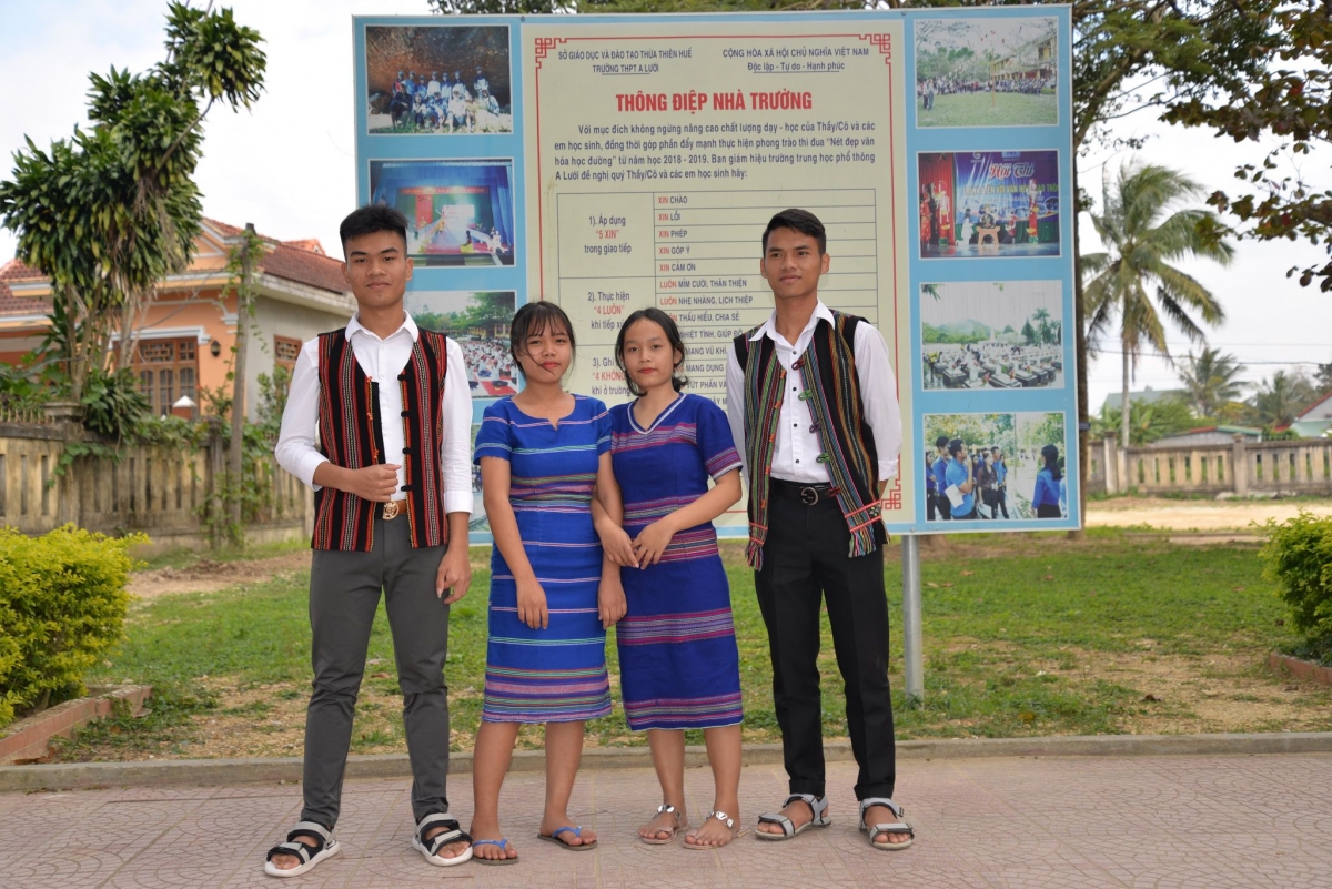 Năm học này, trường THPT A Lưới có gần 850 học sinh, trong đó, 70% các em là người dân tộc thiểu số. Vì vậy, cùng với việc nâng cao chất lượng dạy và học, nhà trường luôn chú trọng tổ chức các hoạt động nhằm giúp học sinh thêm hiểu biết và yêu hơn văn hóa của dân tộc mình. Ngoài việc lồng ghép nội dung về văn hóa địa phương vào các môn học, nhà trường tổ chức các hoạt động ngoại khóa, xem đây là môn học bắt buộc. Đoàn trường THPT A Lưới cũng thường xuyên tổ chức những buổi tham quan, dã ngoại, tìm hiểu các di tích lịch sử, văn hóa tại địa phương; tổ chức các cuộc thi về phong cảnh, con người A Lưới… Cô Nguyễn Thị Thu Hằng, Hiệu trưởng trường THPT A Lưới khẳng định, bảo tồn và phát huy giá trị văn hóa của đồng bào các dân tộc thiểu số được xem là một nhiệm vụ quan trọng bên cạnh công tác dạy học của nhà trường:“Tất cả các hoạt động của nhà trường, nhất là các hoạt động đoàn trường tổ chức như sinh hoạt dưới cờ hoặc hoạt động ngoại khóa hàng tháng đều đưa các nội dung như là bảo tồn tiếng nói, chữ viết, trang phục, âm nhạc… của đồng bào các dân tộc vào. Các cuộc thi khoa học cấp trường thì đề tài các em đưa ra cũng liên quan đến việc dạy tiếng Pa Cô rồi văn hóa ẩm thực A Lưới. Mới đây, nhà trường đã tổ chức cuộc thi “Nét đẹp văn hóa A Lưới qua lăng kính thanh niên”. Qua cuộc thi này đã giúp các em hiểu biết hơn về văn hóa, ẩm thực, phong cảnh của A Lưới.”