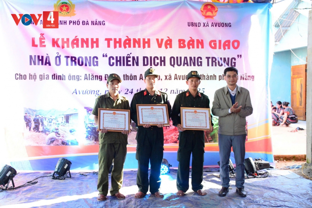 Thực hiện “Chiến dịch Quang Trung” do Chính phủ và Bộ Công an phát động xây dựng và sửa chữa nhà cửa cho các hộ dân bị thiệt hại do thiên tai, chiều ngày 24/12, tại thôn Atêếp, xã Avương, Công an thành phố Đà Nẵng phối hợp UBND xã Avương tổ chức Lễ khánh thành và bàn giao căn nhà đầu tiên cho một hộ dân trên địa bàn.