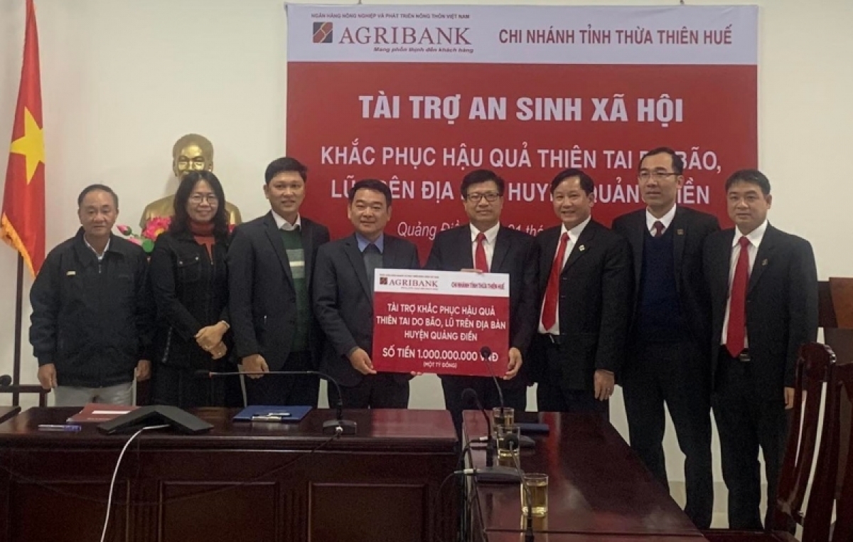 Chiều ngày 21/12, Ngân hàng Nông nghiệp và Phát triển Nông thôn (Agribank) - Chi nhánh tỉnh Thừa Thiên Huế tổ chức trao 1 tỷ đồng hỗ trợ an sinh xã hội khắc phục hậu quả thiên tai trên địa bàn huyện Quảng Điền.