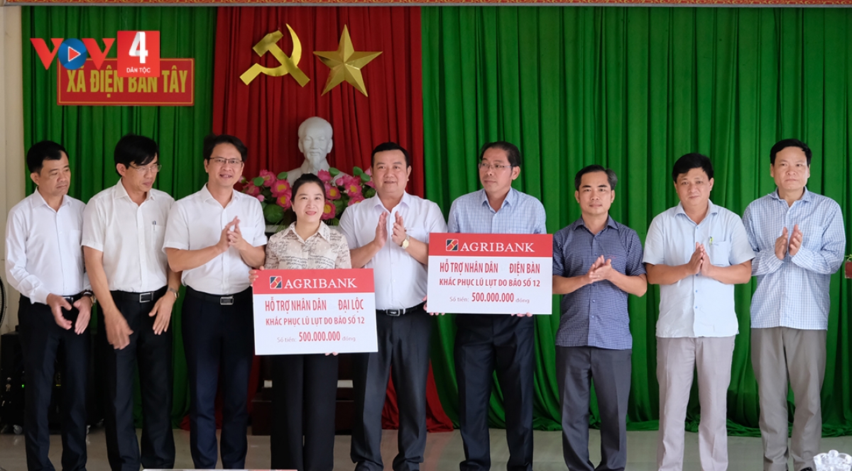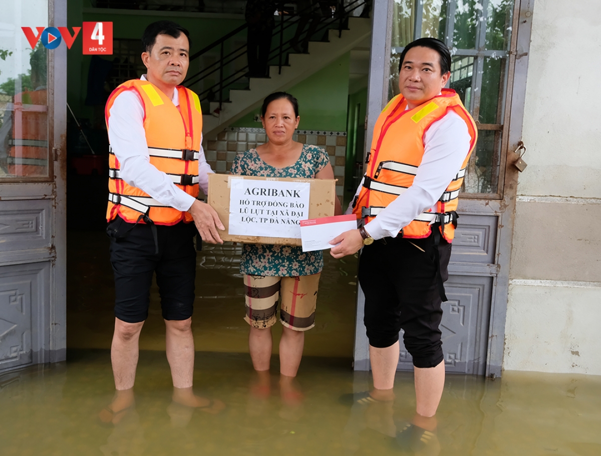Đoàn công tác Văn phòng đại diện Ngân hàng nông nghiệp và Phát triển nông thôn khu vực miền Trung phải đi ghe đến thăm bà con vùng lũ xã Điện Bàn Tây, thành phố Đà Nẵng. Đoàn đã ghé thăm và tặng quà hỗ trợ gia đình bà Phan Thị Tài nằm ở cuối thôn Phong Thử 2. Nhà bà Tài bị ngập trong nước lũ, cả gia đình sống trên gác nhà. Bà Tài đang chăm sóc mẹ già 81 tuổi, bố thì mới đi bệnh viện điều trị tai biến trở về. Bà Tài còn lo cho 2 người thân mắc bệnh thần kinh.