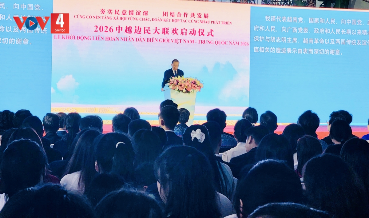 Sáng 17/4, tại thành phố Nam Ninh (Trung Quốc), Tổng Bí thư, Chủ tịch nước Tô Lâm và Phu nhân cùng Đoàn đại biểu cấp cao Việt Nam đã dự Lễ khởi động Liên hoan nhân dân biên giới Việt Nam - Trung Quốc năm 2026 với chủ đề "Củng cố nền tảng xã hội vững chắc, đoàn kết hợp tác cùng nhau phát triển".