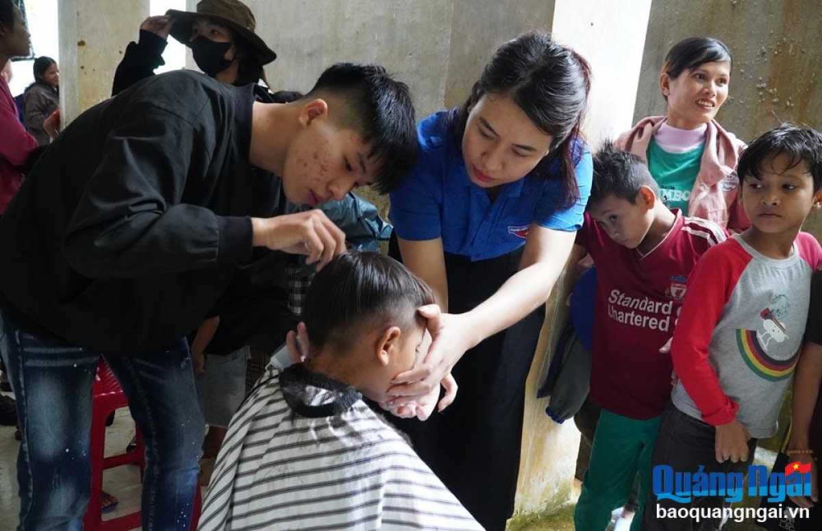 Tại điểm trường tiểu học thôn Trà Bao, xã Sơn Trà, các y, bác sĩ Câu lạc bộ thầy thuốc trẻ Quảng Ngãi đã tổ chức khám bệnh, tư vấn và cấp phát thuốc miễn phí cho 100 người dân hoàn cảnh khó khăn trên địa bàn thôn. Các thành viên Câu lạc bộ Dấu chân tình nguyện tổ chức cắt tóc miễn phí cho học sinh đang theo học tiểu học tại điểm trường tiểu học thôn Trà Bao. Các thành viên Ban Thanh niên Công an tỉnh ra quân tuyên truyền, triển khai Đề án 06, thu nhận dữ liệu cấp căn cước cho thanh thiếu niên, người dân và trao tặng sim điện thoại Viettel, lắp đặt Wifi miễn phí cho hộ nghèo, cận nghèo trên trên địa bàn thôn. Ban tổ chức chương trình tổ chức bữa ăn dinh dưỡng cho các cháu thiếu nhi trong thôn; tặng các suất ăn miễn phí cho người dân có hoàn cảnh khó khăn./.