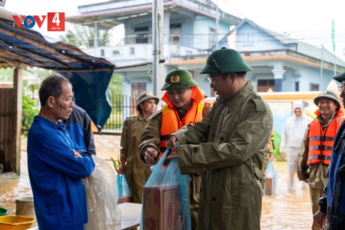 Trong đợt lũ lớn ở thành phố Huế, lực lượng vũ trang địa phương đã huy động gần 6.000 người, ngày đêm căng mình giữa dòng lũ để đảm bảo an toàn tính mạng cho người dân, kịp thời cứu hộ người dân bị lật ghe giữa vùng ngập sâu ven sông, nơi nước xiết, giữ vững niềm tin nơi tâm lũ. Ông Hoàng Quốc Phong, Phó trưởng Công an phường thuận Hóa cho biết đã 3 ngày nay lực lượng Công an và dân quân phường cùng với các lực lượng của thành phố căng mình trong dòng nước chảy xiết, giúp dân trong đợt lũ lớn này. “Quá trình cứu trợ thì lực lượng công an đã gặp rất nhiều trường hợp đặc biệt là các cháu nhỏ lên lên cơn sốt, rồi những trường hợp thai phụ mang thai đến kỳ sinh nở, rồi những trường hợp bị đột quỵ đều được lược lượng kịp thời đến ứng cứu và đưa vào cấp cứu kịp thời,không để xảy ra ảnh hưởng đến tính mạng và sức khỏe của người dân. Trưa hôm nay (29/10), công an phường cùng với lực lương an ninh trật tự cơ sở chuyển cơm, mì tôm và nước uống cho những địa bàn thấp trũng”.