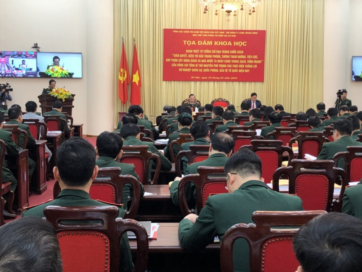 Sáng ngày 20/02, tại Bộ Quốc phòng, Tổng cục Chính trị Quân đội nhân dân Việt Nam phối hợp với Hội đồng Lý luận Trung ương, Nhà xuất bản Chính trị Quốc gia Sự thật tổ chức Tọa đàm khoa học Quán triệt tư tưởng chỉ đạo trong cuốn sách “Kiên quyết, kiên trì đấu tranh phòng, chống tham nhũng tiêu cực, góp phần xây dựng Đảng và Nhà nước ta ngày càng trong sạch, vững mạnh” của Tổng Bí Thư Nguyễn Phú Trọng vào thực hiện thắng lợi sự nghiệp quân sự, quốc phòng, bảo vệ Tổ quốc hiện nay. Đại tướng Phan Văn Giang, Ủy viên Bộ Chính trị, Phó Bí thư Quân ủy Trung ương, Bộ trưởng Bộ Quốc phòng tham dự. Tọa đàm tổ chức trực tiếp và trực tuyến tại 41 điểm cầu trong toàn quân với 1.600 đại biểu tham gia.