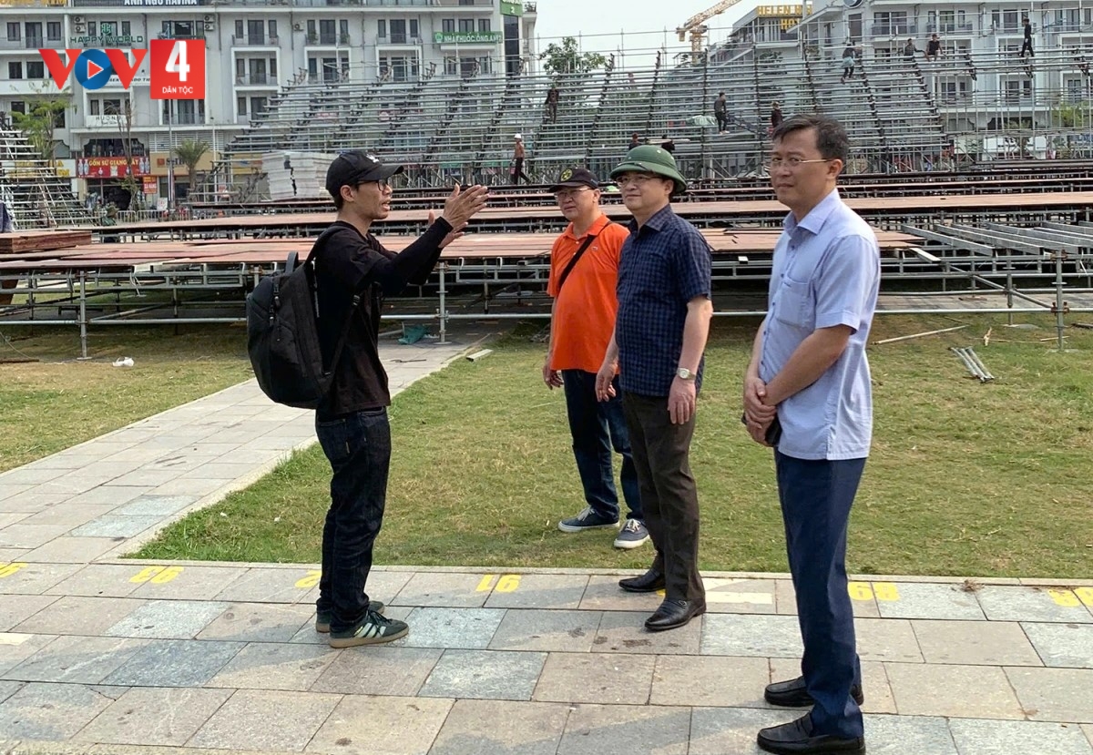 Kiểm tra khu vực sân khấu, khán đài Lễ khai mạc tại Quảng trường 30/10, ông Đỗ Tiến Sỹ nhấn mạnh đây là điểm nhấn với chương trình nghệ thuật “Thanh âm kỷ nguyên mới”, dự kiến thu hút khoảng 50.000 khán giả. Vì vậy, yêu cầu các đơn vị bảo đảm tuyệt đối an toàn, rà soát kỹ hệ thống kỹ thuật, an ninh trật tự, phòng cháy chữa cháy và điều kiện phục vụ khán giả. Đoàn cũng kiểm tra tại Cung Quy hoạch, Hội chợ và Triển lãm tỉnh – nơi diễn ra Hội chợ OCOP, Lễ hội ẩm thực và Triển lãm về ngành phát thanh Việt Nam và thành tựu Quảng Ninh (từ 10–13/4), nhằm mang lại trải nghiệm phong phú cho đại biểu, du khách.