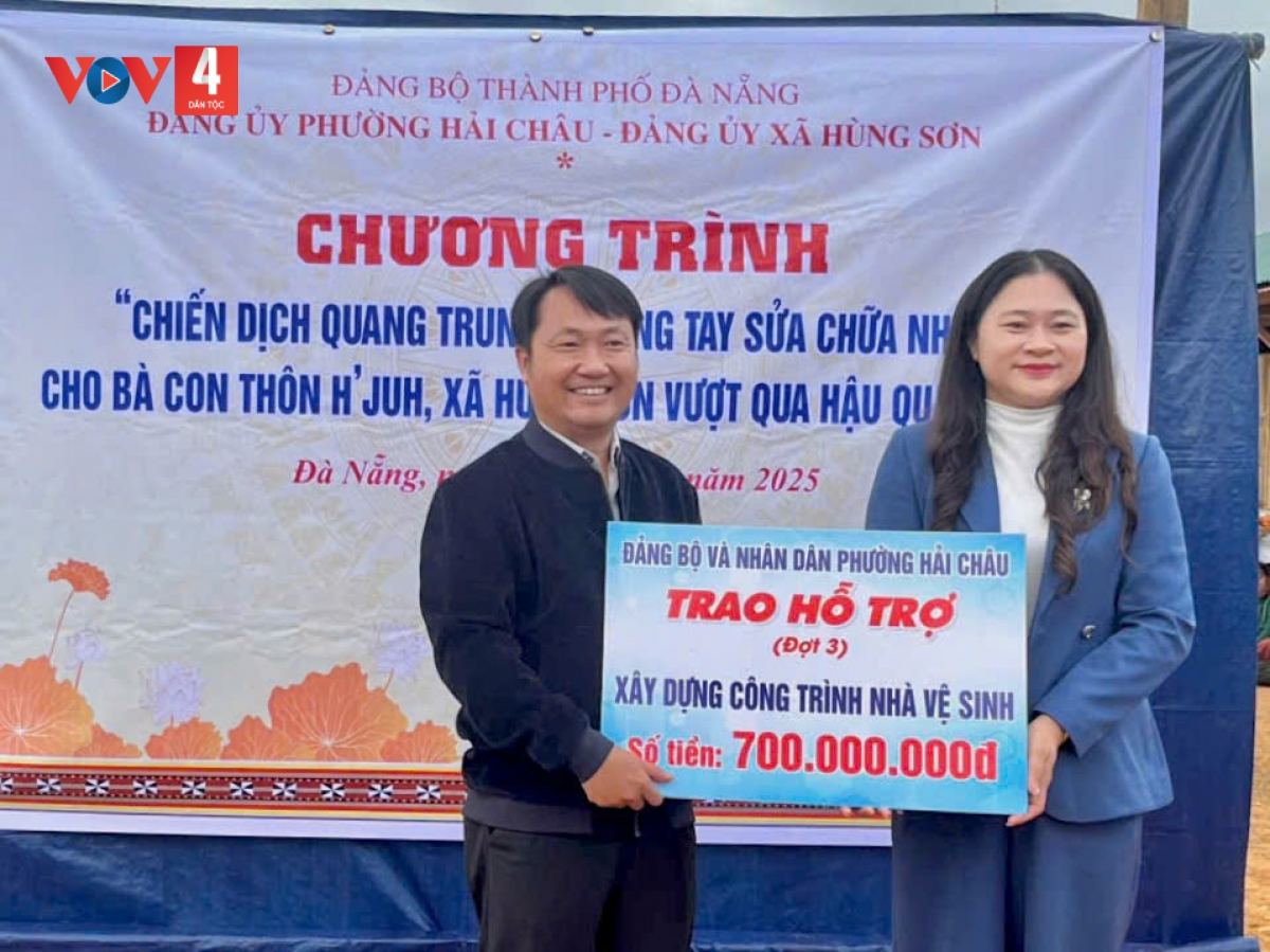 Ngày 26/12, đoàn công tác phường Hải Châu (phường trung tâm thành phố Đà Nẵng cũ) đã đến thăm hỏi, trao kinh phí hỗ trợ xây dựng công trình nhà vệ sinh tặng các hộ dân tại thôn H’juh, xã biên giới Hùng Sơn (huyện Tây Giang, tỉnh Quảng Nam cũ) bị thiệt hại do mưa lũ vừa qua.