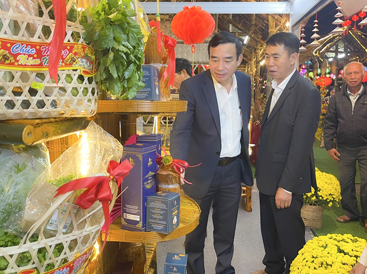 Tước lêng bhiệc bhan ta mooi bơơn lêy n’năl la lua ooy Tết ty đanh ahay lâng đợ đhr’nong đong ty vêy ta bhrợ cớ, ra pặ, pa chăm xay p’căh ghít bh’rợ đương cha Tết ty đanh; lướt lêy pazêng râu chr’ơh cơnh hát bài chòi, hát lô tô lâng bấc chr’ơh ty đanh; lêy biểu diễn bhươl cr’noon bh’rợ tr’nêng lâng đợ chr’na đha năh cơnh ty đanh, xrặ thư pháp, pazêng râu n’juông xa nay âng apêê thầy đồ. Ting n’năc, Ban bhrợ têng công bhrợ zr’lụ pa câl pr’đươi OCOP, chr’na đha năh ng’bhrợ têng, pr’đươi thủ công mỹ nghệ, hàng i ih, xa nấp, pô cha năm…