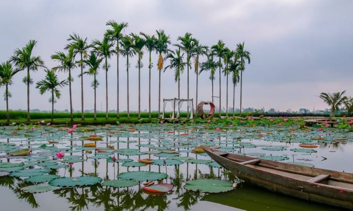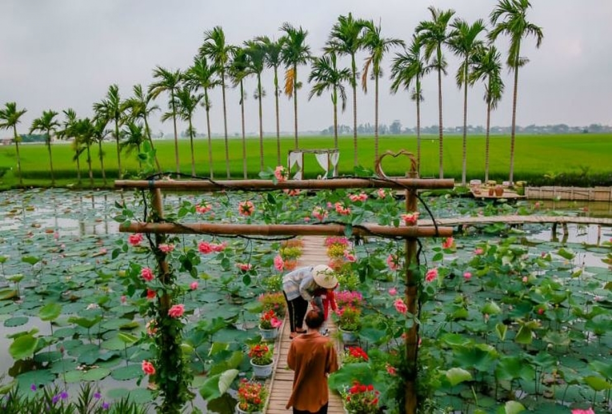 Đi du học từ Nhật Bản trở về, chị Trần Thị Ngọc Trang, ở xã Duy Thành, huyện Duy Xuyên, tỉnh Quảng Nam bắt tay triển khai dự án du lịch cộng đồng. Ban đầu, Trang thuê người cải tạo cánh đồng sen của gia đình trở thành điểm tham quan du lịch. Khách tới đây được trải nghiệm cánh đồng sen, chèo ghe trong hồ…. Hơn 2 năm ảnh hưởng dịch bệnh Covid-19 nhưng điểm du lịch này vẫn thu hút du khách tìm về tham quan. Có lúc, mô hình du lịch cộng đồng của chị Trang đón khoảng 200 đến 300 lượt khách mỗi ngày. Trong khu vực đầm sen, Trang còn trồng nhiều loài hoa rực rỡ khác để du khách có thêm lựa chọn điểm check-in. Tại đây, Trang còn mở dịch vụ giải khát, trạm dừng nghỉ ngơi và bán hạt sen đóng gói. Chị Trần Thị Ngọc Trang rất vui khi cánh đồng sen này ngày càng đông du khách tìm đến: “Khách tới đây trải nghiệm có khu vui chơi dưới vườn dừa và bơi thuyền ra ngoài ao sen. Đầu tiên, tôi khởi nghiệp như thế này, nhiều thanh niên trẻ tới để học hỏi mô hình của tôi và bây giờ họ đã mở rộng giống mô hình của tôi. Tôi cũng tạo công ăn việc làm và thu nhập cho mọi người.”