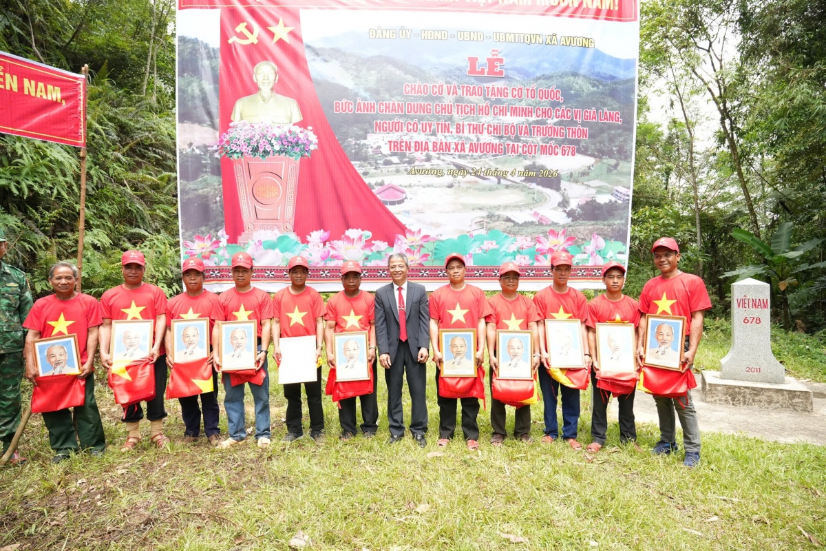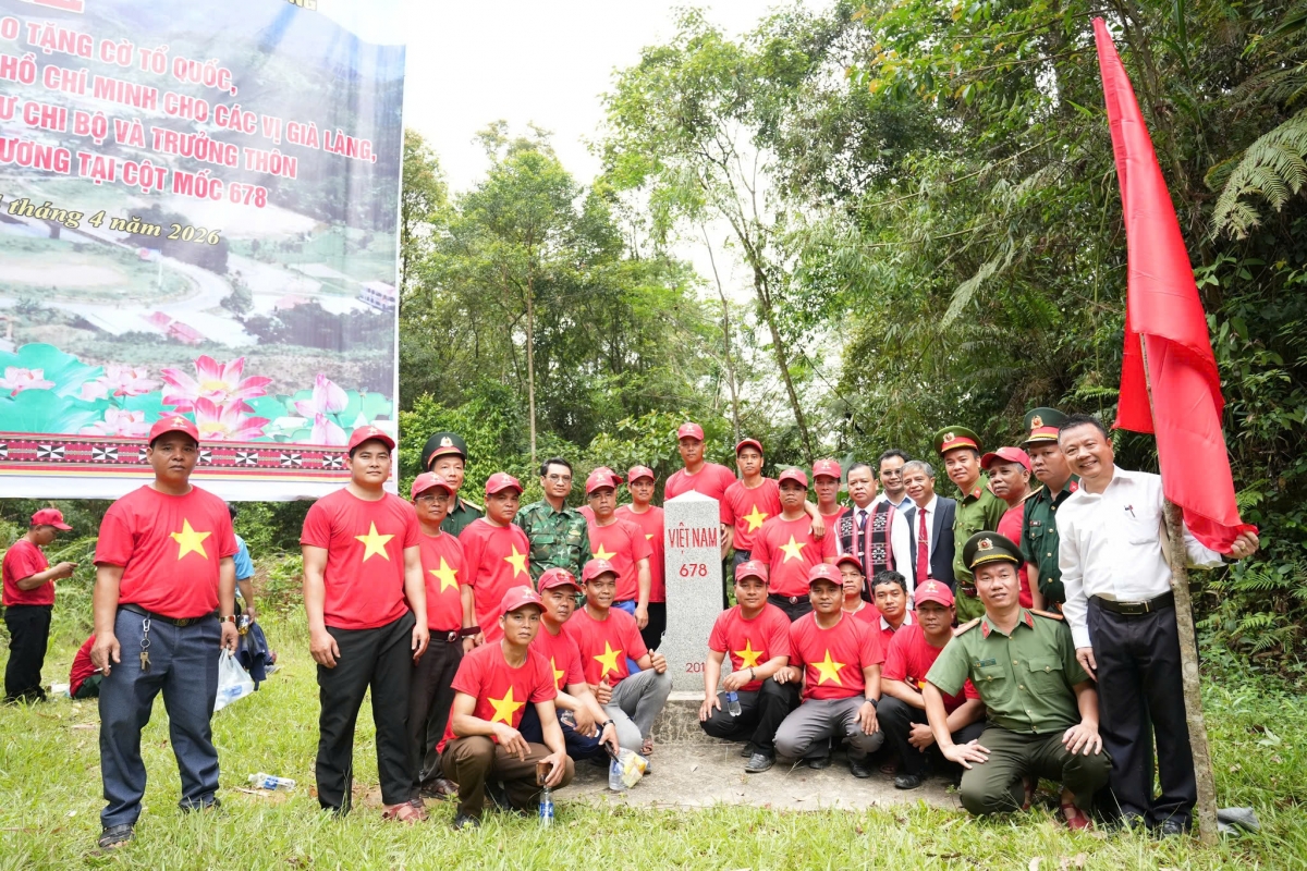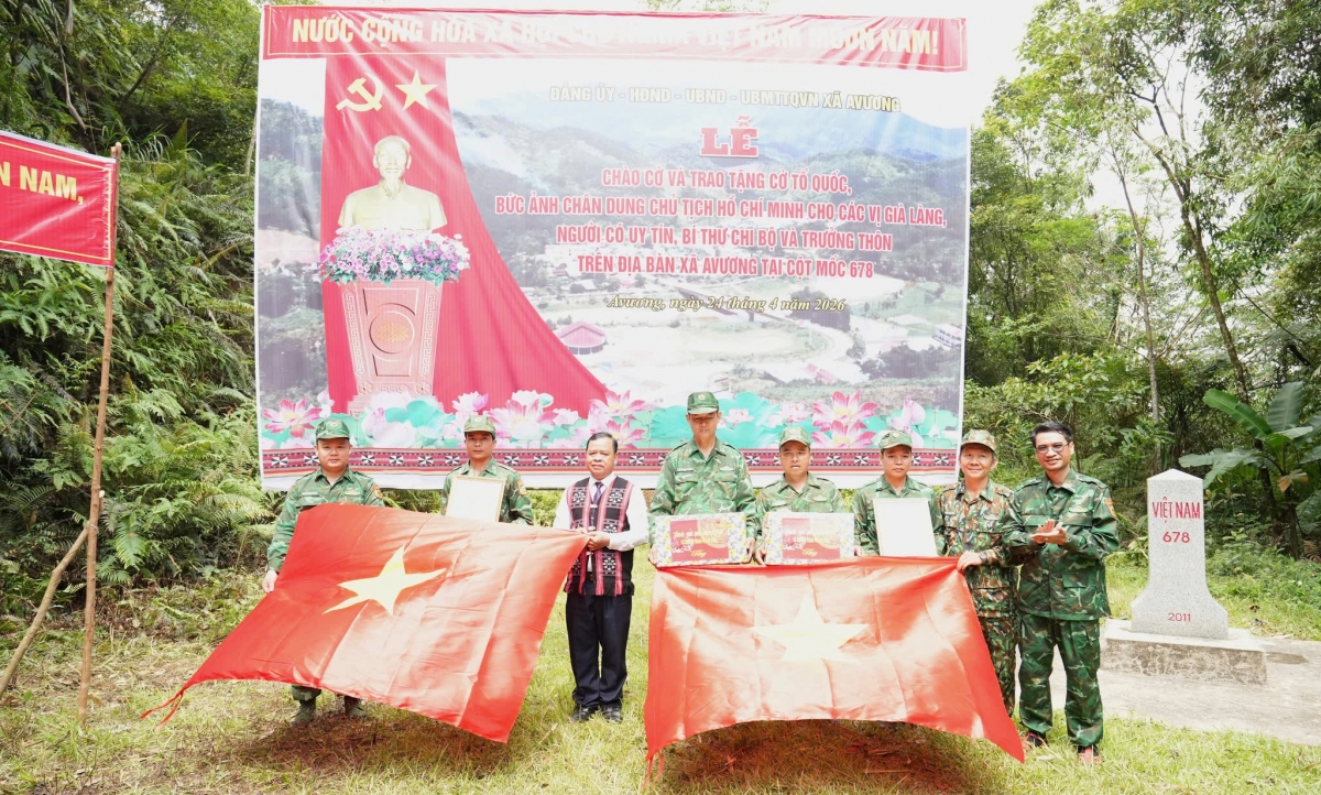 Hòa cùng không khí kỷ niệm 51 năm Ngày giải phóng hoàn toàn miền Nam, thống nhất đất nước (30/4/1975 – 30/4/2026) của cả nước, xã Avương, thành phố Đà Nẵng đã tổ chức Lễ chào cờ và trao tặng cờ Tổ quốc, ảnh chân dung Hồ Chí Minh tại cột mốc biên giới 678 – nơi đánh dấu chủ quyền thiêng liêng của Tổ quốc.