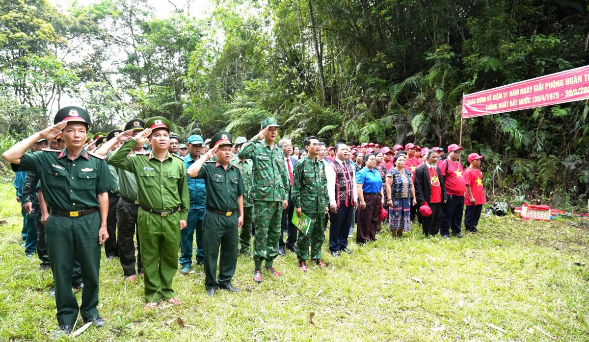 Từ sáng sớm, lãnh đạo xã cùng các lực lượng vũ trang, già làng, người có uy tín, Bí thư chi bộ và trưởng thôn đã vượt núi rừng hiểm trở để có mặt tại cột mốc. Giữa đại ngàn Trường Sơn hùng vĩ, lễ chào cờ diễn ra trang nghiêm, tiếng Quốc ca vang vọng giữa núi rừng càng làm dâng lên niềm tự hào, ý thức trách nhiệm bảo vệ biên giới trong mỗi người.