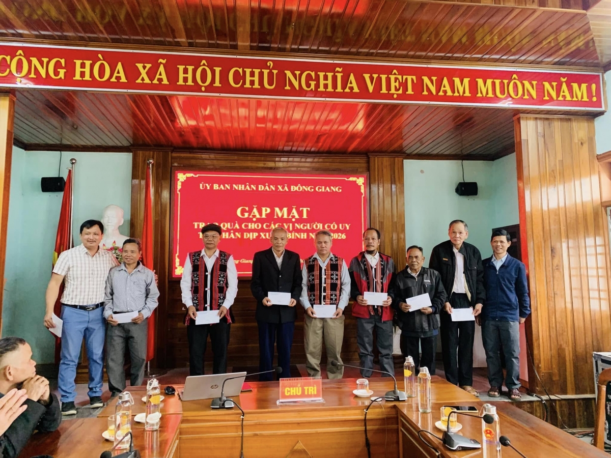 Nhân dịp Tết Bính Ngọ 2026, UBND xã Đông Giang tổ chức gặp mặt và tặng quà người có uy tín trong đồng bào dân tộc thiểu số của xã Đông Giang