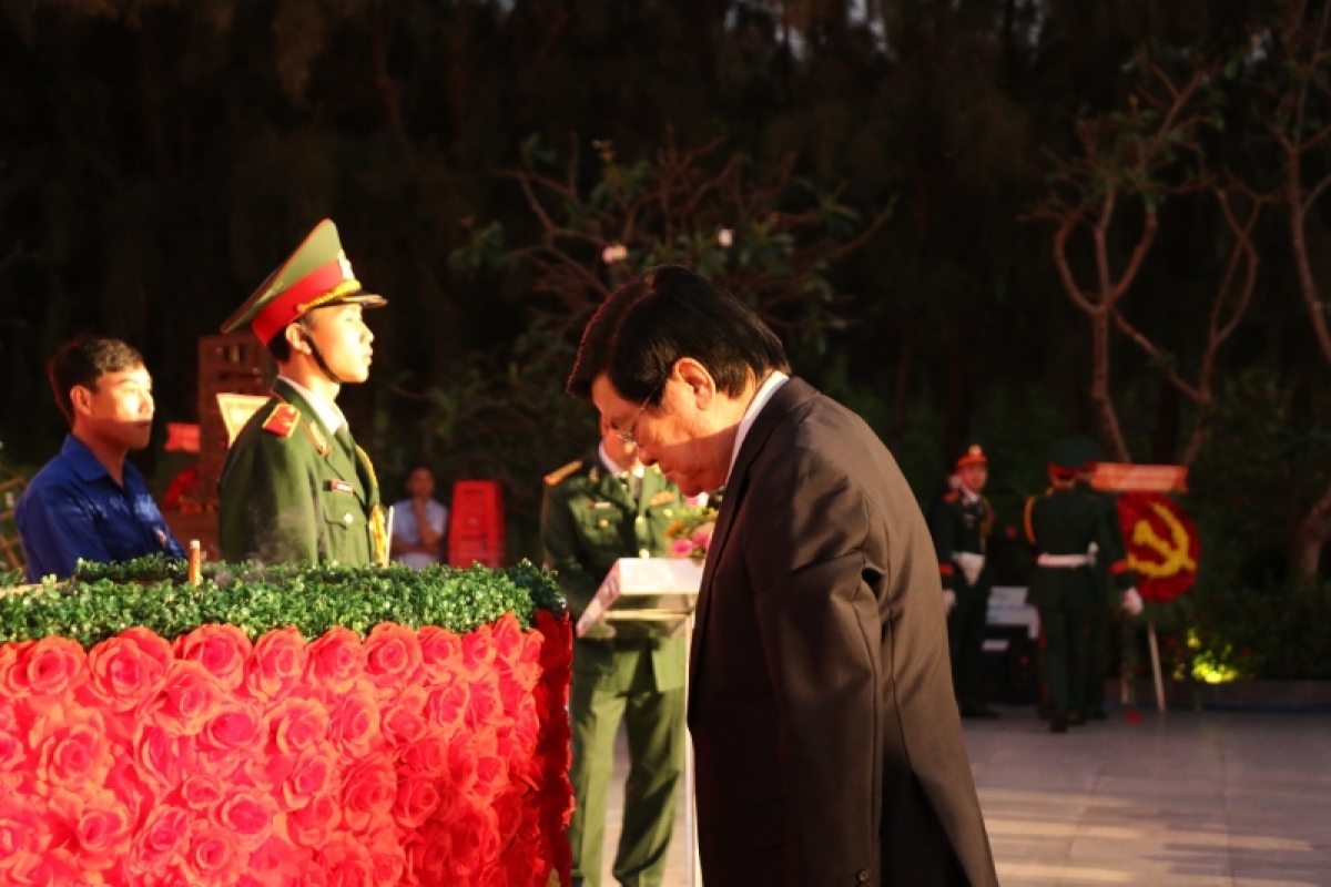 Nguyên Chủ tịch nước Trương Tấn Sang dự Lễ tưởng niệm 35 năm ngày 64 cán bộ, chiến sĩ hy sinh tại Gạc Ma