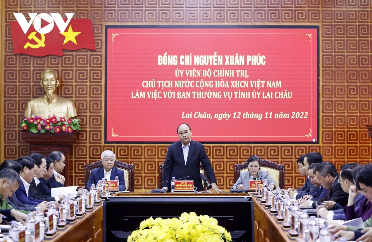 Phát biểu chỉ đạo tại buổi làm việc, Chủ tịch nước Nguyễn Xuân Phúc nêu rõ, Lai Châu là tỉnh có vị trí chiến lược đặc biệt quan trọng về kinh tế - xã hội và quốc phòng - an ninh và đối ngoại của đất nước. Sau gần 20 năm chia tách, thành lập tỉnh Lai Châu, tỉnh đã đạt những thành tựu nhất định. Tỉnh cần tập trung nguồn lực phát triển kinh tế dựa trên các trụ cột: nông lâm nghiệp hàng hóa tập trung, quy mô lớn gắn với xây dựng nông thôn mới bền vững; công nghiệp mà tỉnh có lợi thế, công nghiệp chế biến sản phẩm nông nghiệp; thương mại, dịch vụ, kinh tế cửa khẩu và du lịch.