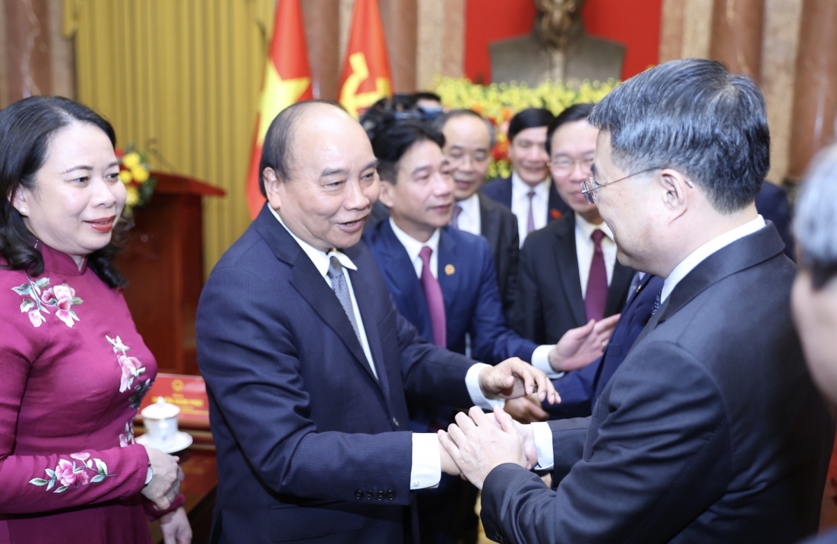 Chiều ngày 4/2, tại Phủ Chủ tịch, Văn phòng Chủ tịch nước tổ chức trọng thể lễ bàn giao công tác giữa nguyên Chủ tịch nước Nguyễn Xuân Phúc với quyền Chủ tịch nước Võ Thị Ánh Xuân.