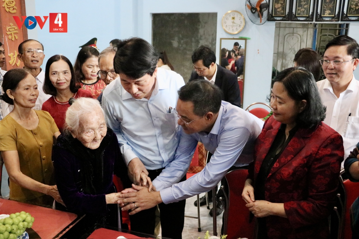 Dịp này, Chủ tịch nước Lương Cường đã tới thăm hỏi, động viên và tặng quà Mẹ Việt Nam anh hùng Nguyễn Thị Ngôn, năm nay 105 tuổi, tại thôn Bảo An, xã Gò Nổi./.