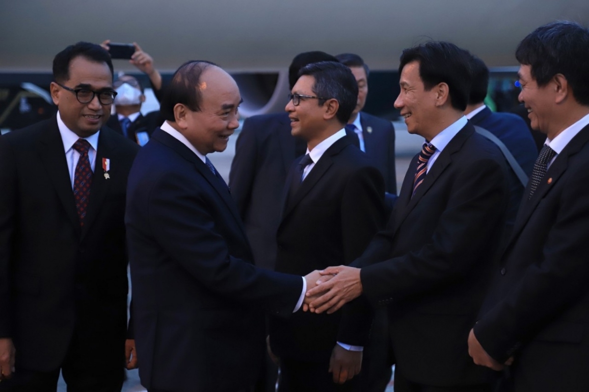 Chiều tối ngày 21/12 theo giờ địa phương,(cùng giờ Việt Nam), Chủ tịch nước Nguyễn Xuân Phúc dẫn đầu Đoàn cấp cao Việt Nam đã đến sân bay Soekarno Hatta, Thủ đô Jakatar, bắt đầu thăm cấp Nhà nước Indonesia.