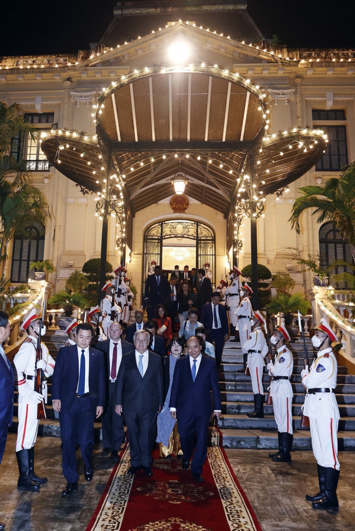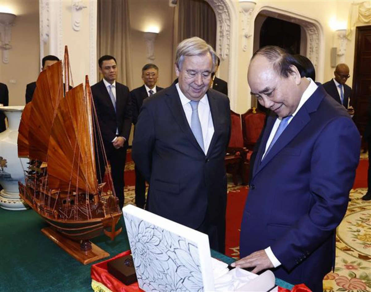 Nhân chuyến thăm chính thức của Tổng Thư ký LHQ António Guterres tại Việt Nam, chiều tối 21/10, tại Hà Nội, Chủ tịch nước Nguyễn Xuân Phúc và Tổng Thư ký LHQ đã chủ trì Lễ kỷ niệm 45 năm Việt Nam gia nhập LHQ (20/9/1977 - 20/9/2022).