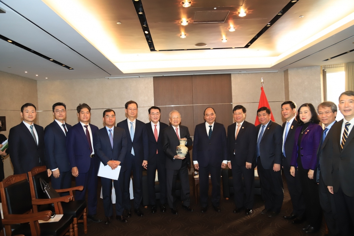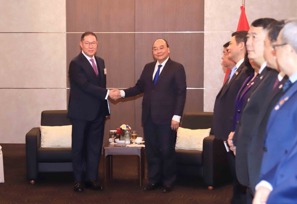 Tại các buổi tiếp, Chủ tịch nước Nguyễn Xuân Phúc cho biết, với việc Việt Nam tham gia ký kết các Hiệp định Thương mại tự do thế hệ mới, các doanh nghiệp Hàn Quốc đầu tư và có cơ hội mở rộng thị trường tại Việt Nam, thị trường ASEAN và châu Á - Thái Bình Dương và nhiều thị trường khác. Chủ tịch nước đề nghị các tập đoàn đầu tư vào các địa phương của Việt Nam ở những lĩnh vực có thế mạnh, công nghệ cao, bảo vệ môi trường.