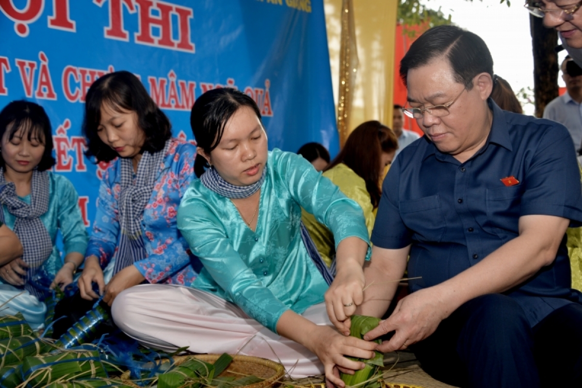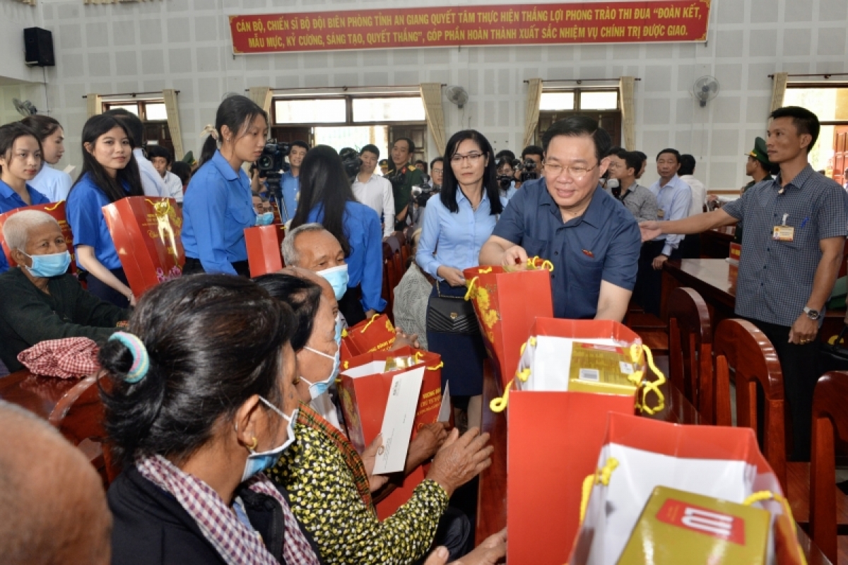 Chủ tịch Quốc hội Vương Đình Huệ đánh giá cao Đảng bộ, chính quyền các cấp của tỉnh An Giang đã quan tâm, chăm lo cho gia đình chính sách, người có công với cách mạng, đồng bào các dân tộc Khmer, Chăm, Hoa và công nhân lao động, những người nghèo, hoàn cảnh khó khăn, có một cái Tết vui tươi, đầm ấm.