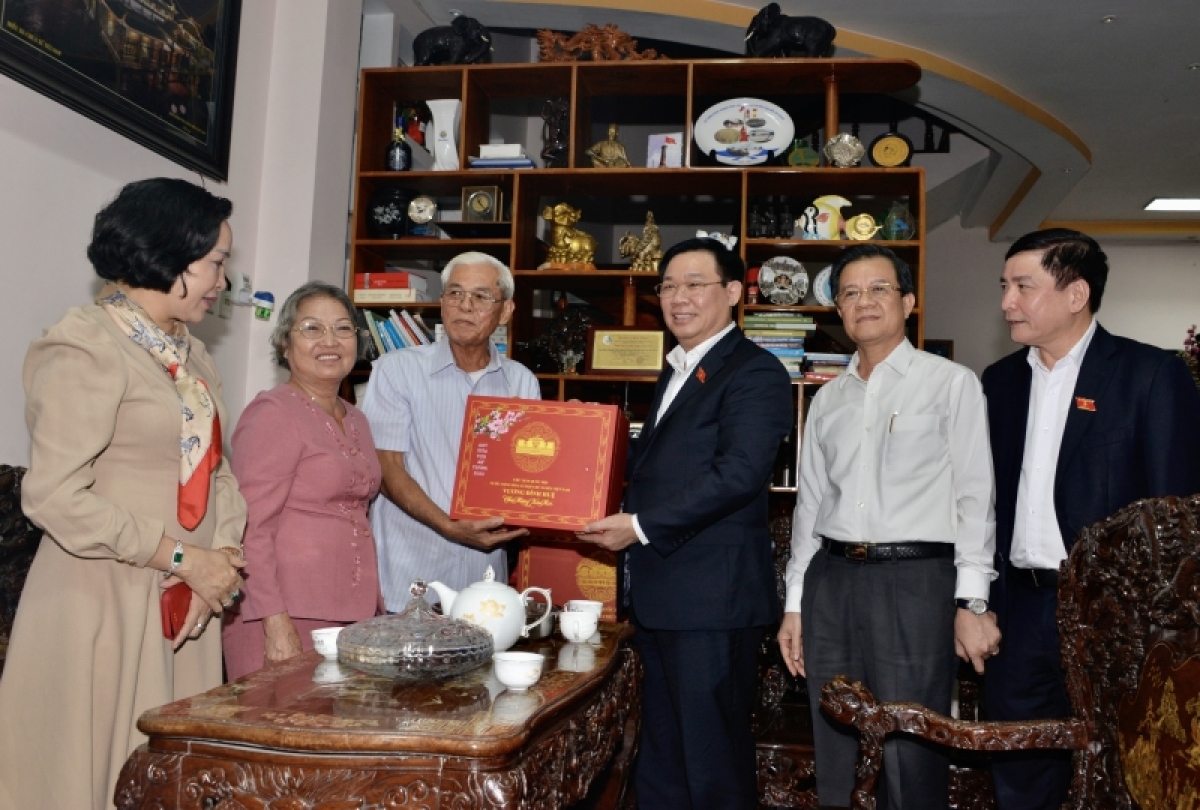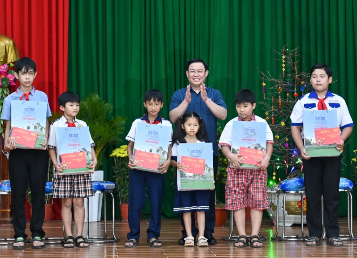 Chủ tịch Quốc hội Vương Đình Huệ vừa tới thăm, chúc Tết, tặng quà gia đình chính sách, hộ nghèo, đồng bào dân tộc và công nhân lao động hoàn cảnh khó khăn trên địa bàn tỉnh An Giang.
