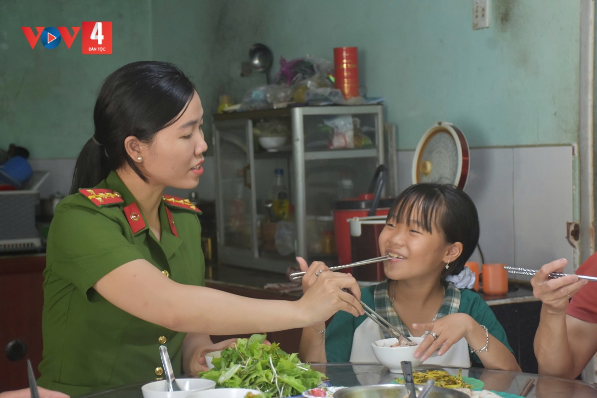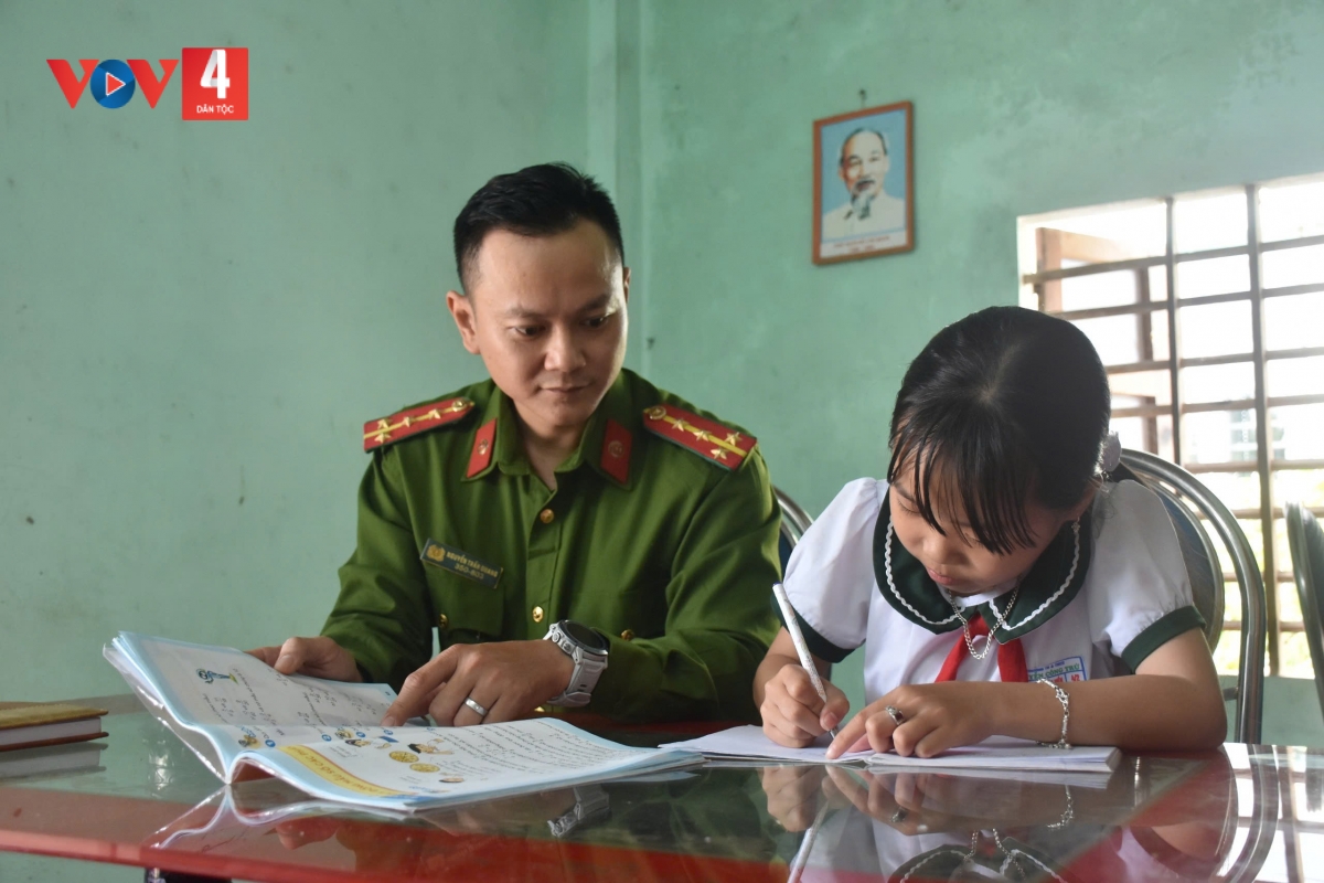 Không chỉ hỗ trợ sách vở, quần áo, chi phí học tập, các đoàn viên, thanh niên Công an xã còn thường xuyên quan tâm, động viên, kèm cặp việc học, giúp em có thêm điểm tựa tinh thần, tiếp tục đến trường. Những buổi trò chuyện giản dị, những lần hướng dẫn bài vở đã dần xóa đi khoảng cách, vun đắp nên tình cảm gắn bó như người thân trong gia đình.